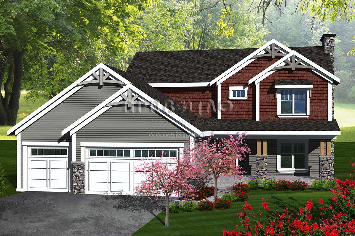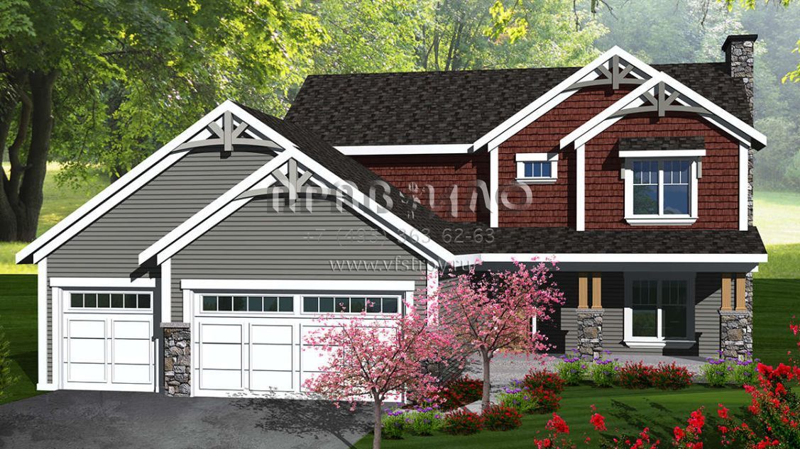 Проект двухэтажного дома с гаражом на три и более машин в американском стиле S5-179 (1020-00205)