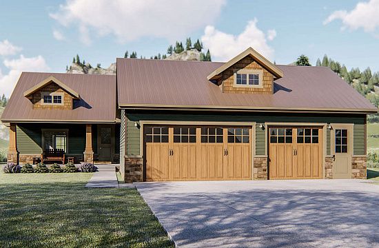 Проект двухэтажного дома с гаражом на две машины в стиле Ранчо S5-179 (110-00250)