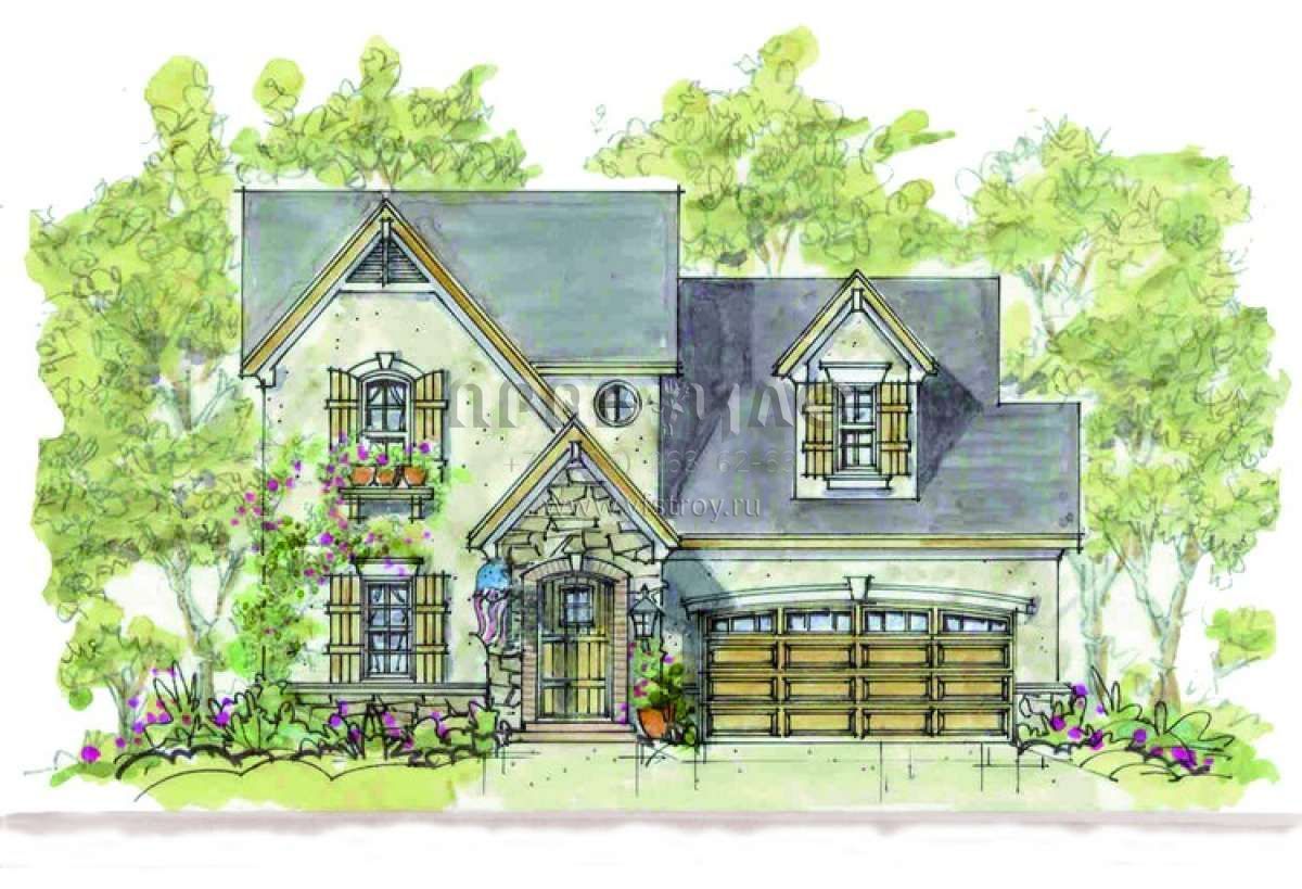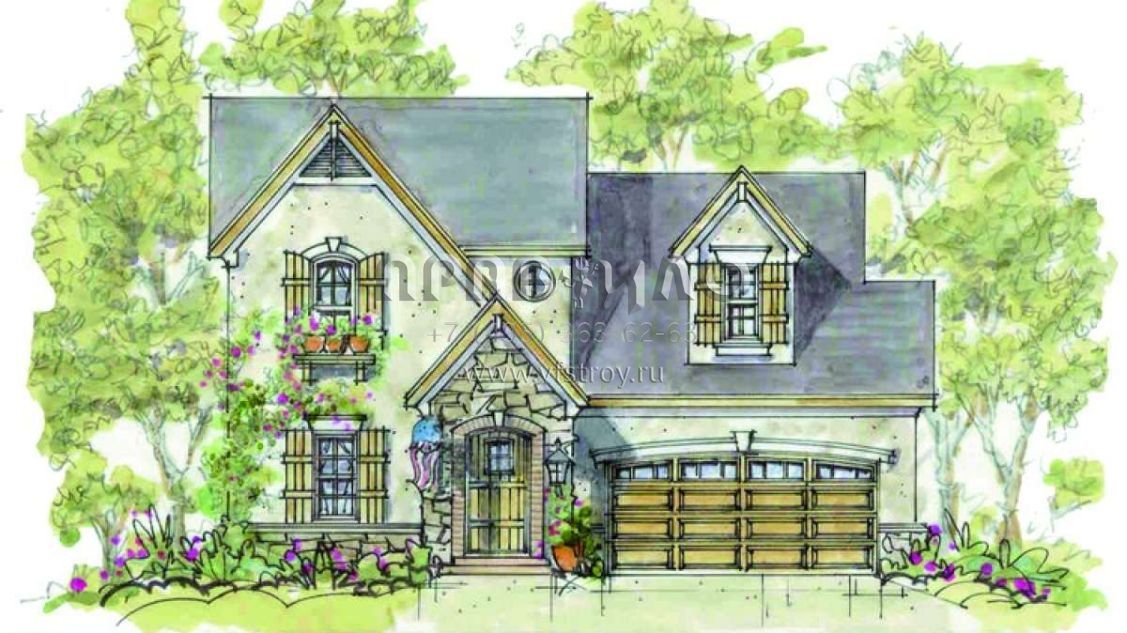 Проект двухэтажного дома с гаражом на две машины в стиле Ранчо S5-179 (402-00887)