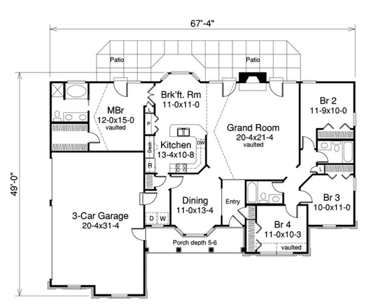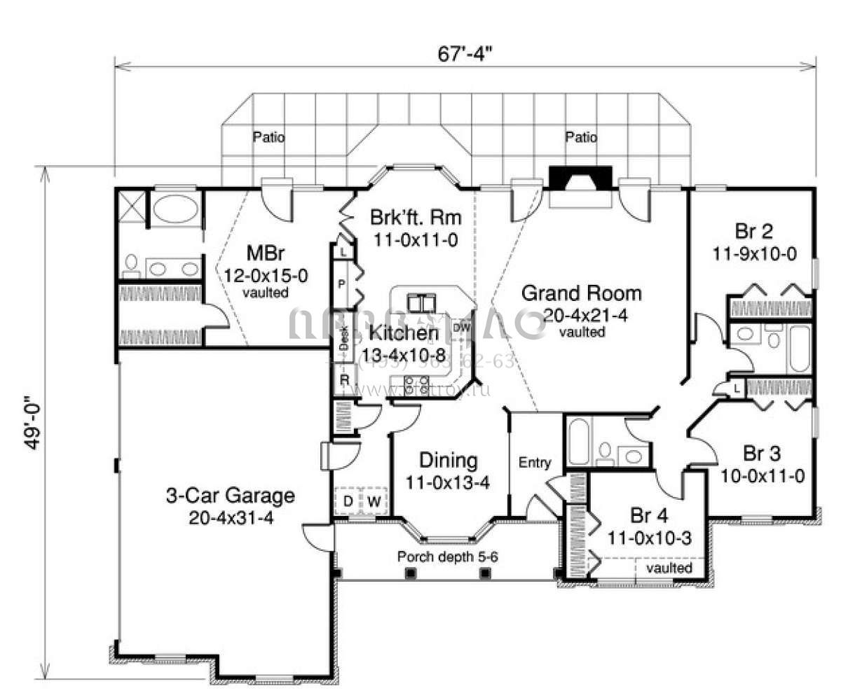 Проект одноэтажного дома с гаражом на три и более машин в классическом стиле S5-179 (5633-00154)