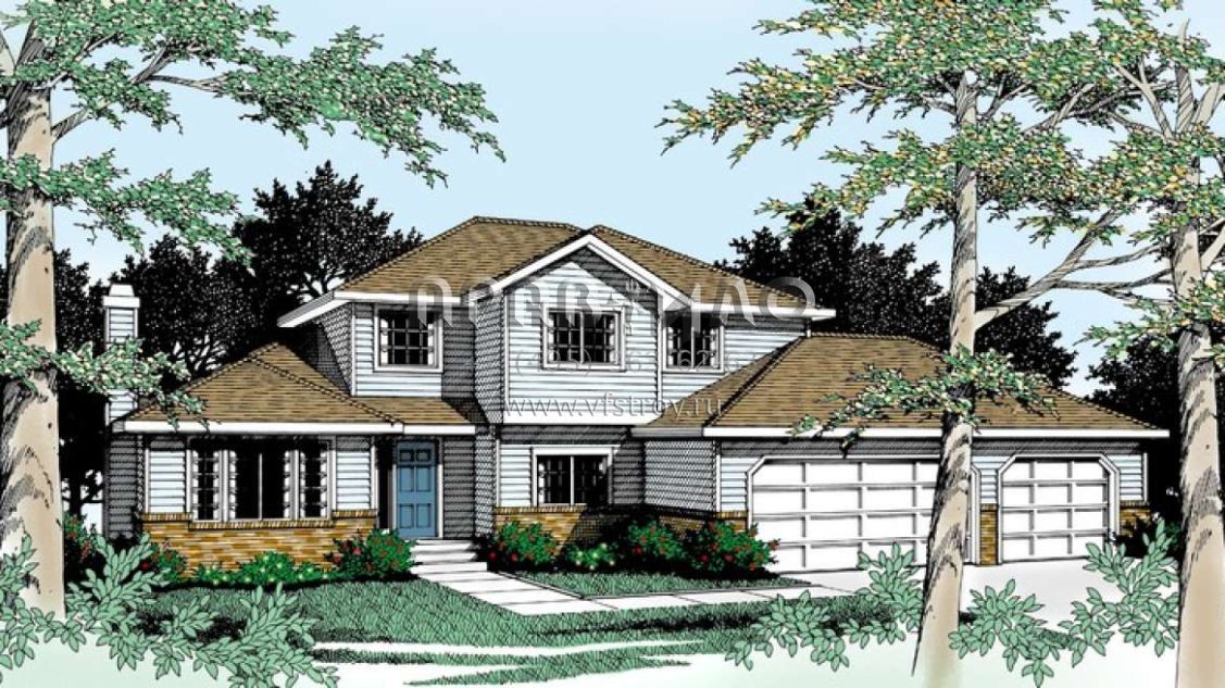 Проект двухэтажного дома с гаражом на три и более машин в стиле Ранчо S5-179 (692-00055)