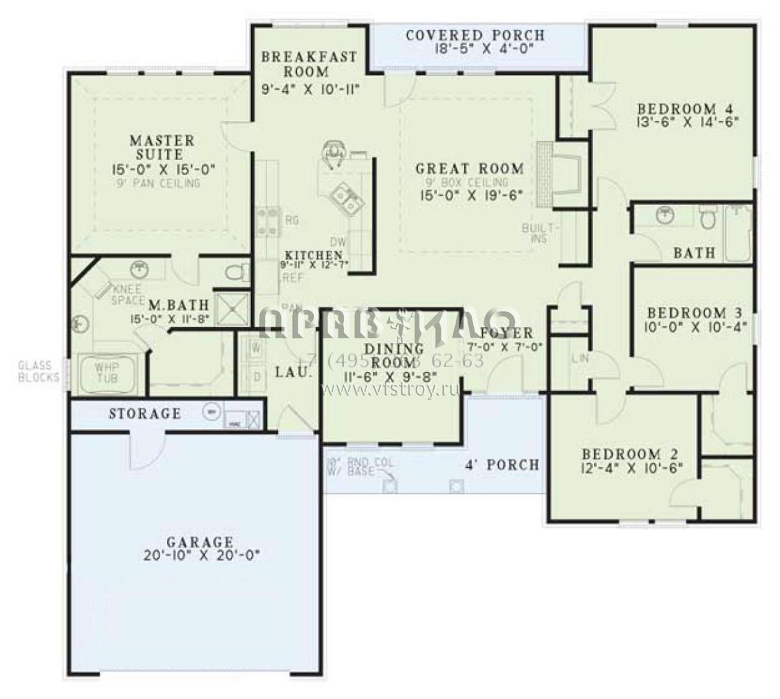 Проект одноэтажного дома с гаражом на две машины в стиле Ранчо S5-180 (110-00104)