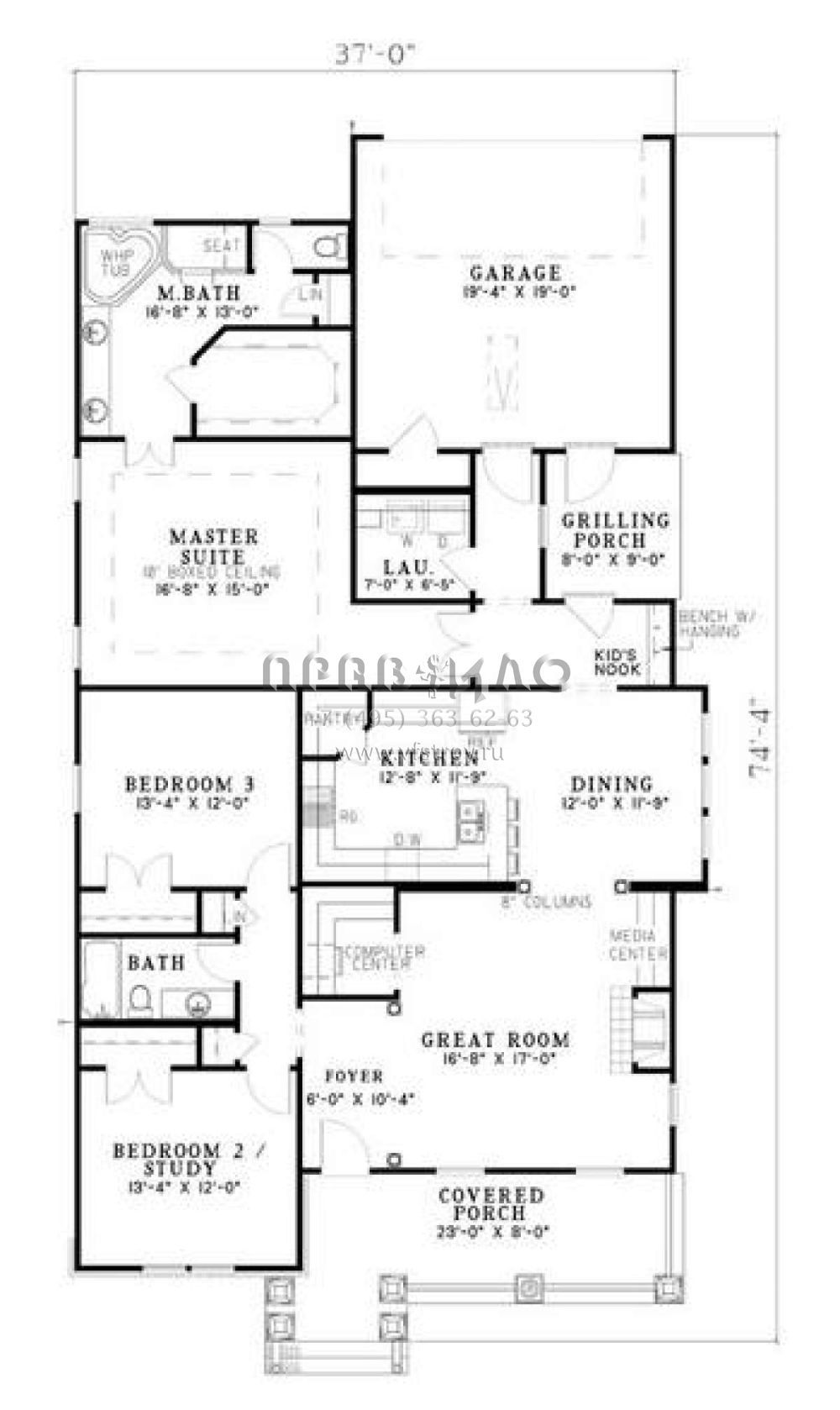 Проект одноэтажного дома с гаражом на две машины в стиле Ранчо S5-180 (110-00449)