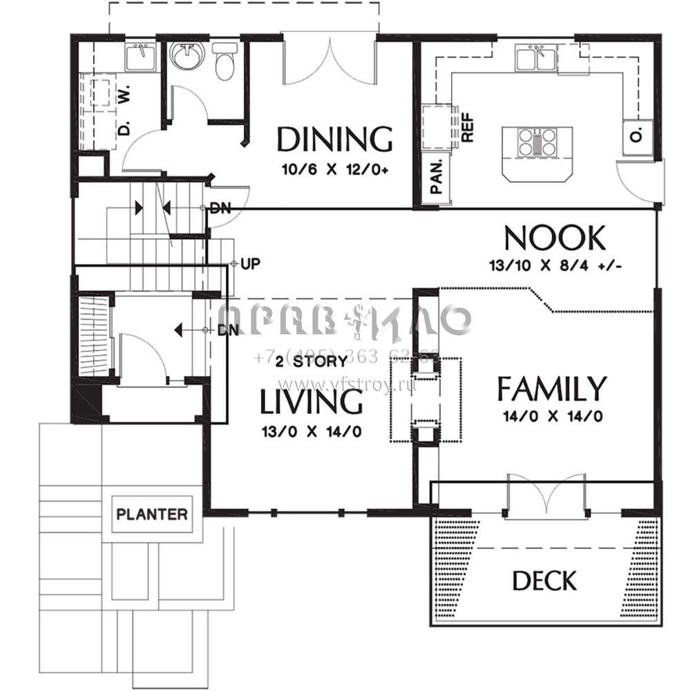 S5-180 (2559-00251) Это иностранный проект, для которого требуется адаптация под нормы, действующие в Российской Федерации. Вы видите проект дома в стиле Ранчо. В этом доме сочетаются черты сельской постройки и аскетичность лофта. Внутри жильцы смогут проводить время с максимальным комфортом. Обратим внимание, что сейчас на планировках все размеры представлены в футах. Для перевода в метры вам необходимо значение в футах умножить на 0,3048.
