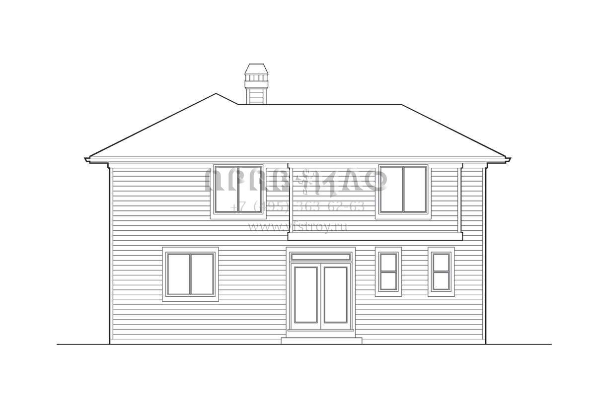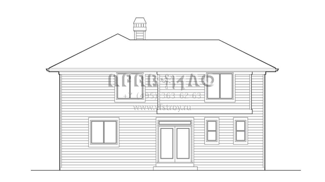 Двухэтажный проект дома позволяет рационально распорядиться площадью участка небольшого размера или узкой формы. На первом этаже находятся общие комнаты (гостиная/столовая, кухня, подсобные и технические помещения), на втором — спальни членов семьи.