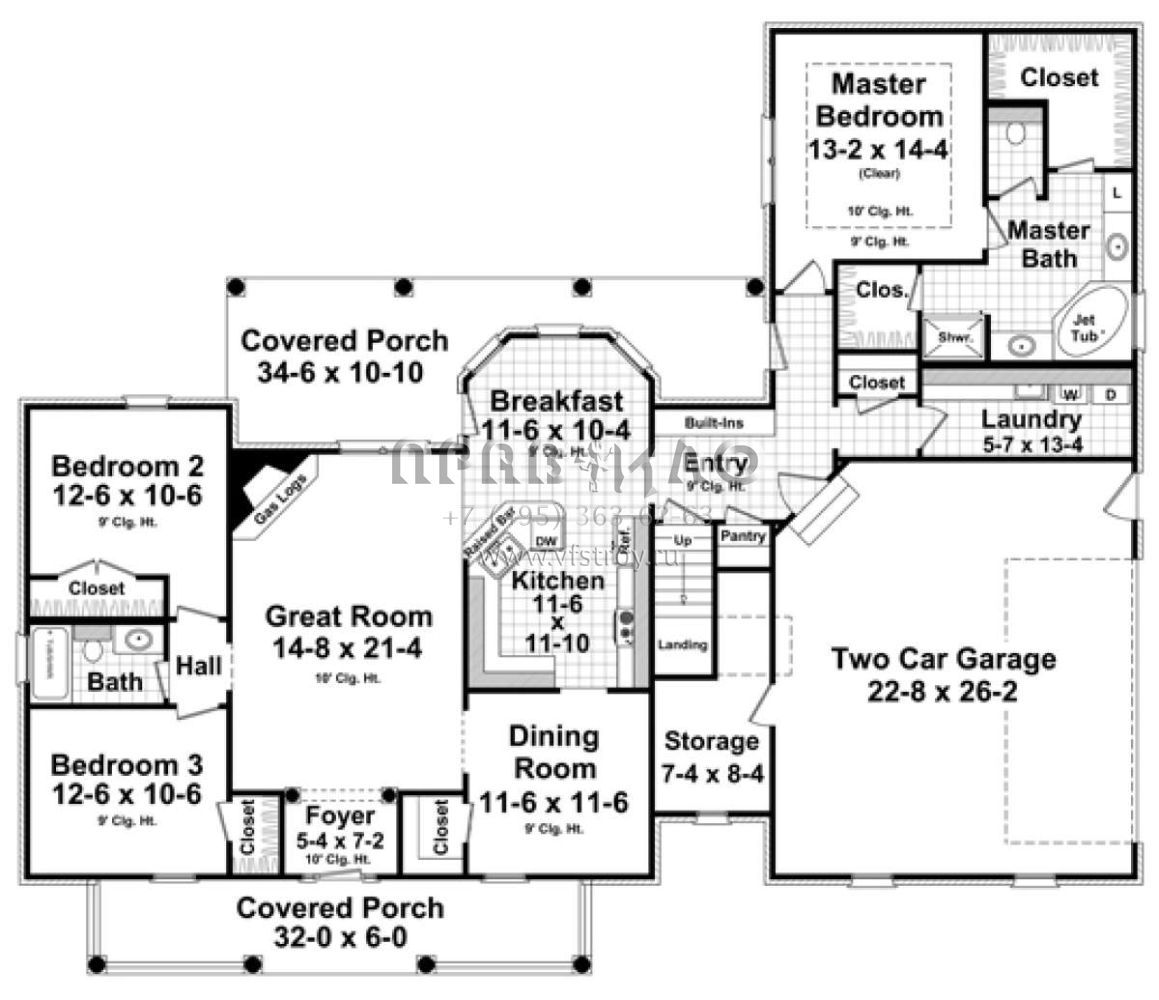 Проект одноэтажного дома с гаражом на две машины в стиле Ранчо S5-180 (348-00269)