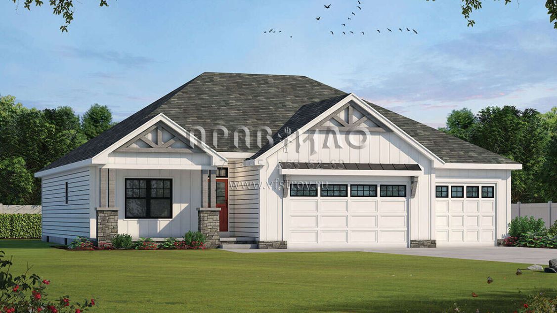 Проект одноэтажного дома с гаражом на три и более машин в американском стиле S5-180 (402-01659)