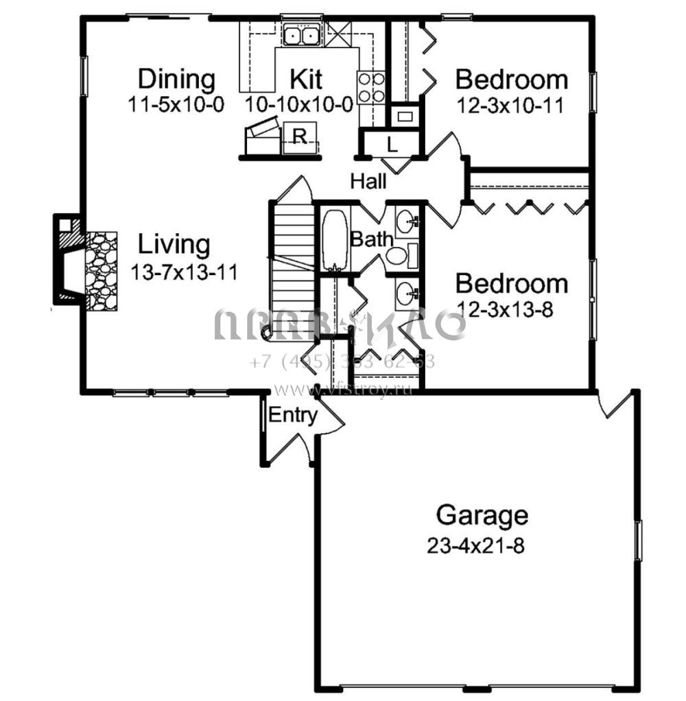 Проект двухэтажного дома с гаражом на две машины в стиле Ранчо S5-180 (5633-00427)