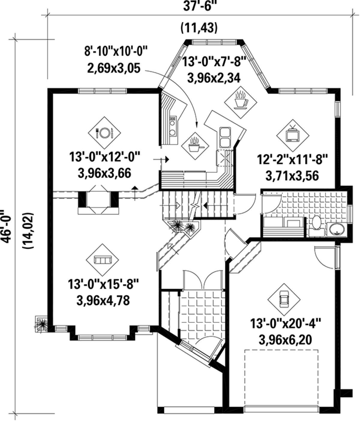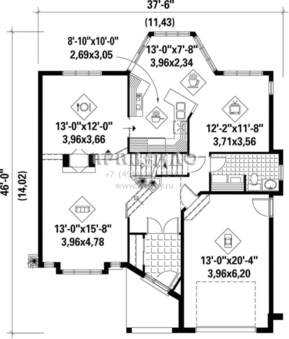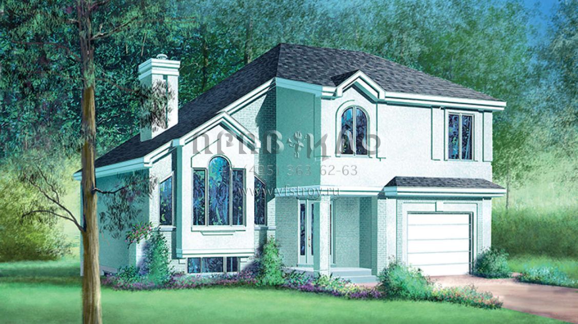 Проект двухэтажного дома с гаражом на одну машину в английском стиле S5-180 (6146-00083)