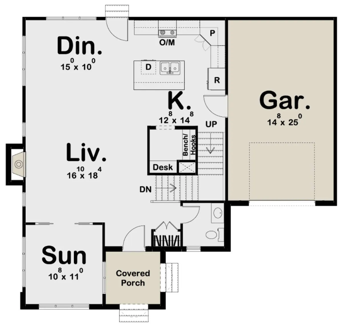 Проект двухэтажного дома с гаражом на одну машину в современном стиле S5-180 (963-00376)