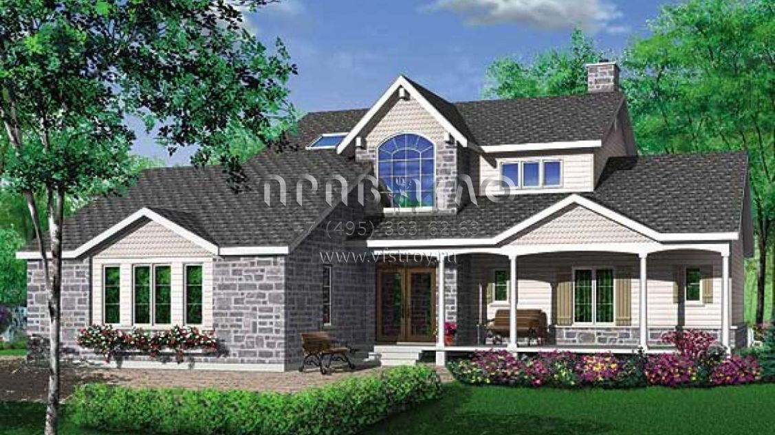 Проект двухэтажного дома с гаражом на две машины в стиле Ранчо S5-181 (034-00029)