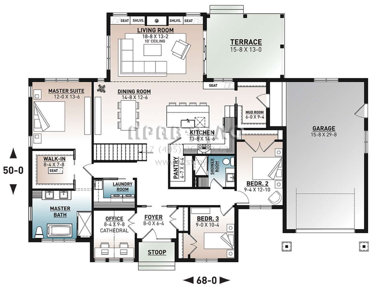 Проект одноэтажного дома с гаражом на одну машину в современном стиле S5-181 (034-01291)