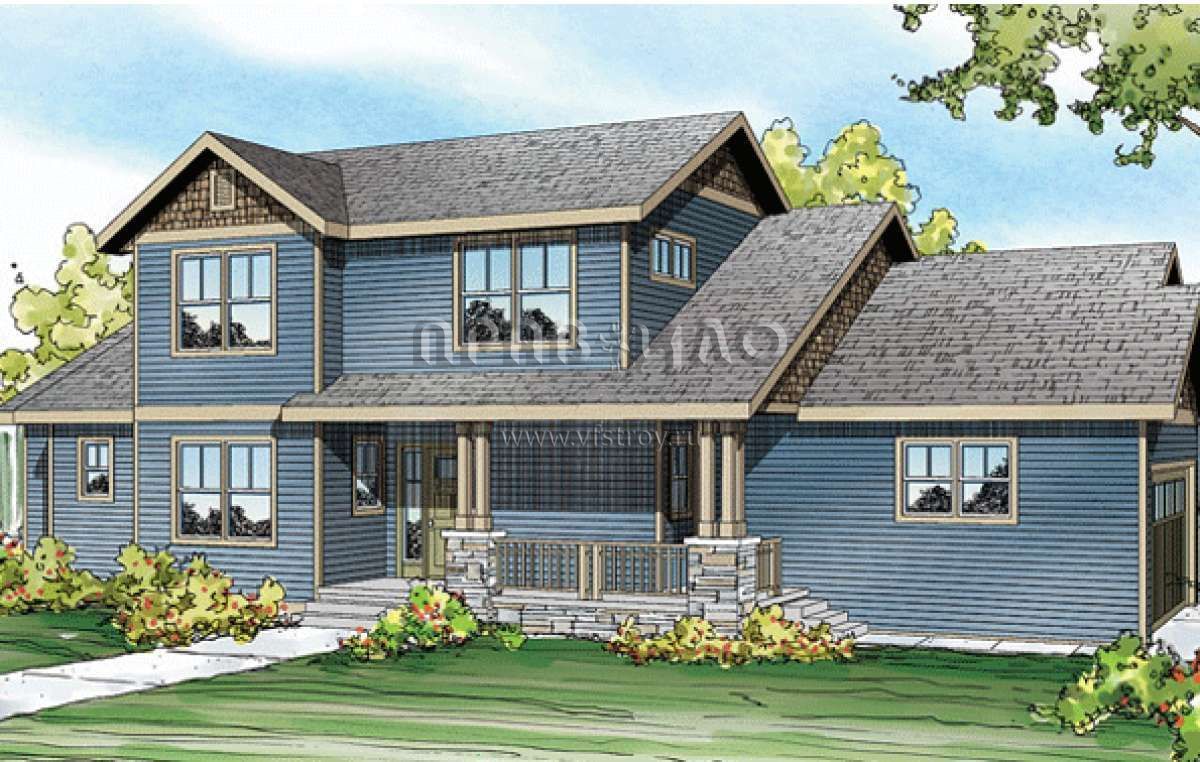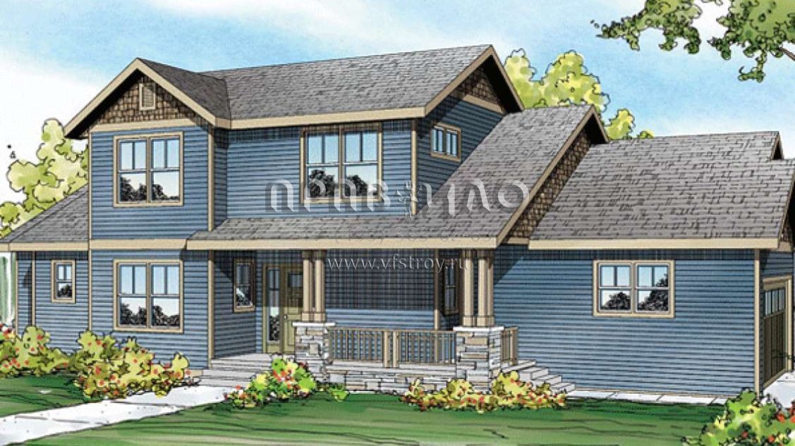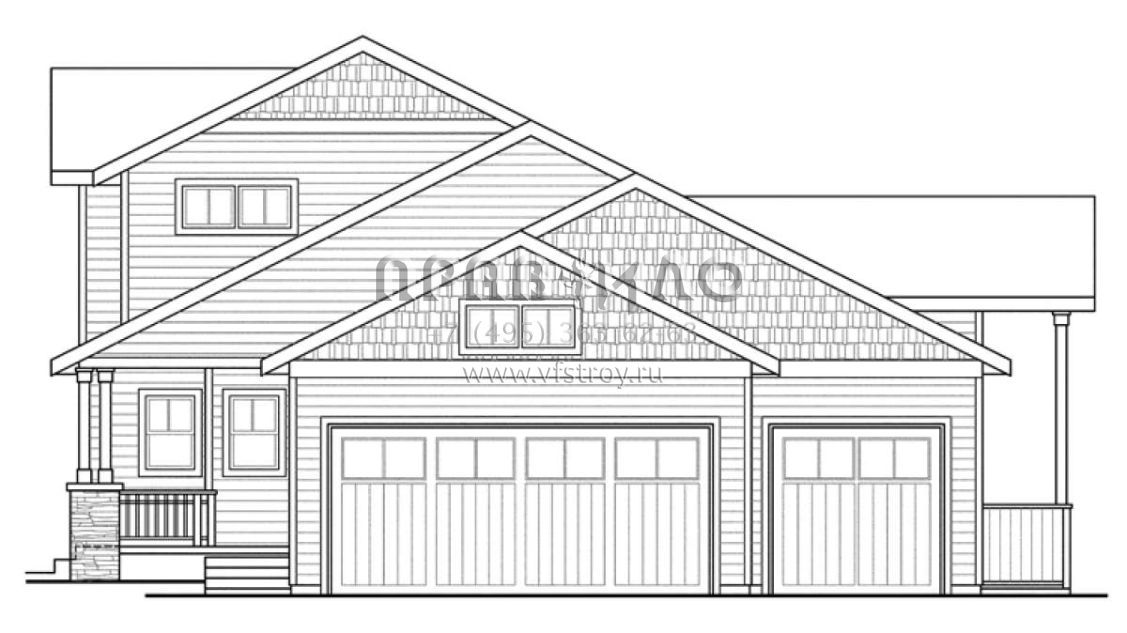 Проект двухэтажного дома с гаражом на три и более машин в американском стиле S5-181 (035-00608)