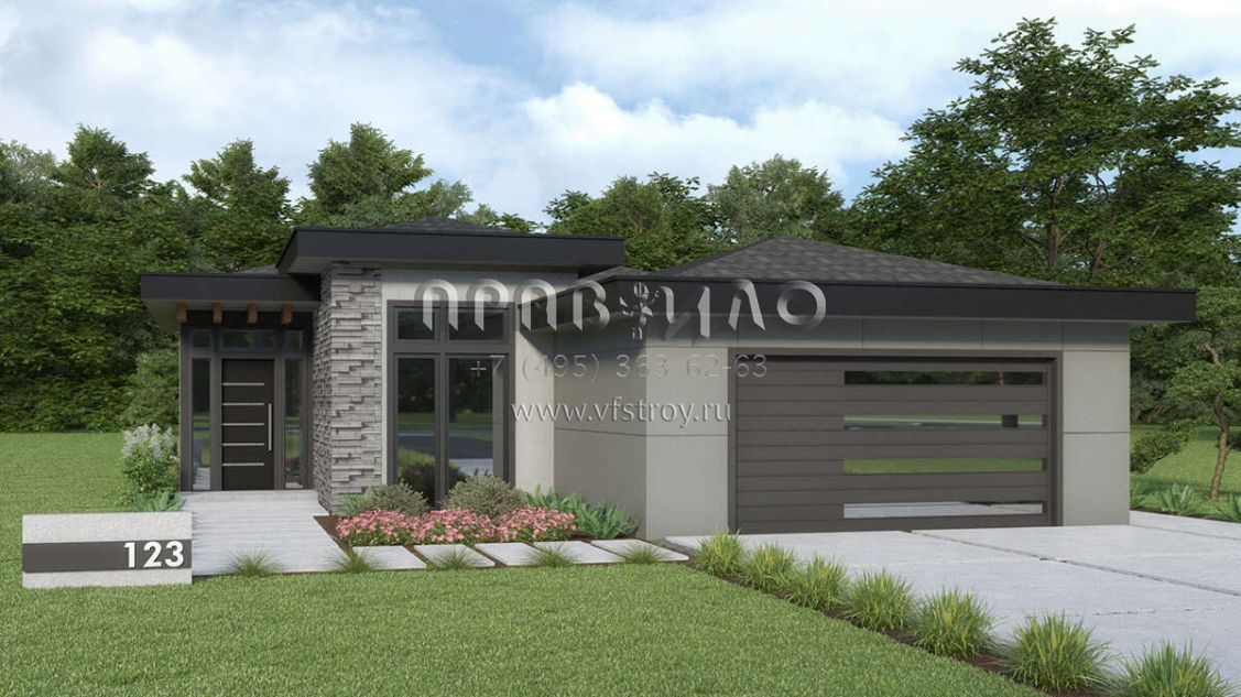 Проект одноэтажного дома с гаражом на две машины в современном стиле S5-181 (2464-00070)