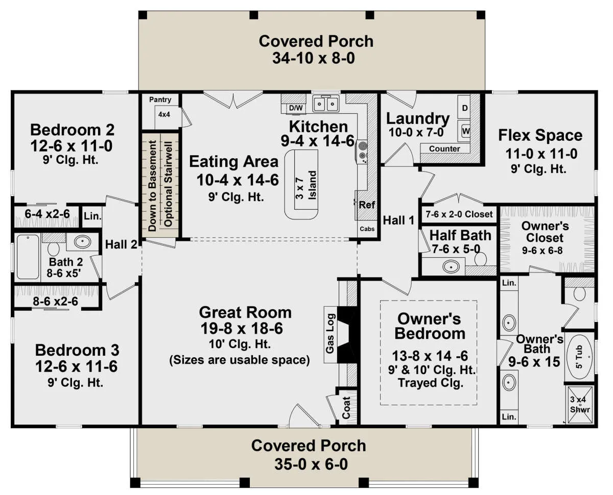 Проект одноэтажного дома без гаража в стиле Ранчо S5-181 (348-00237)