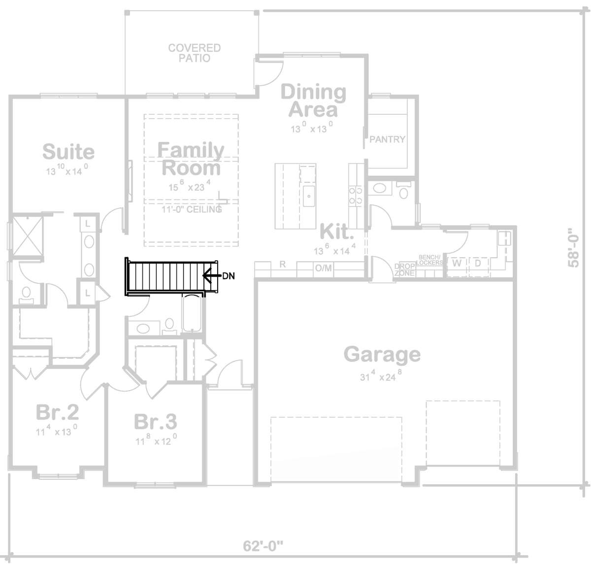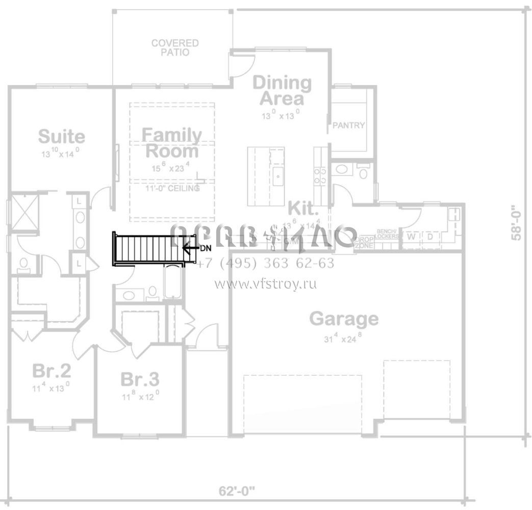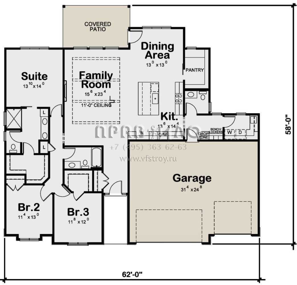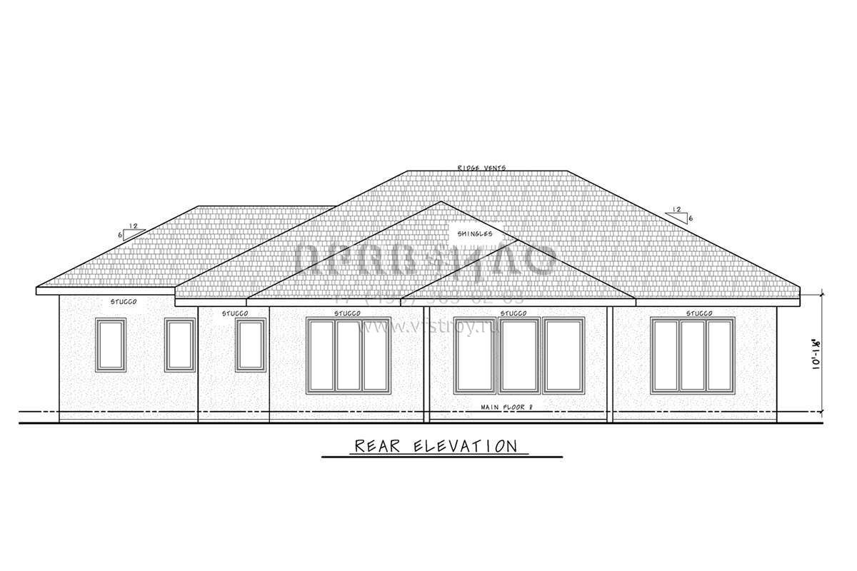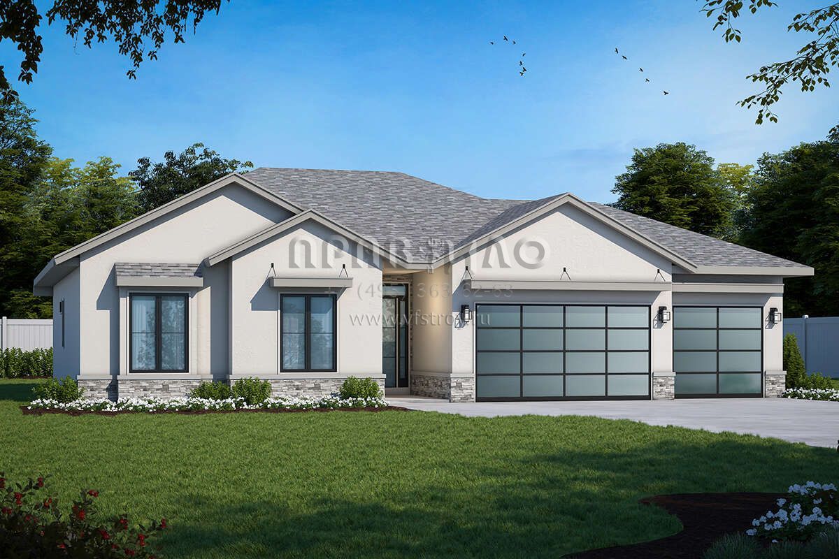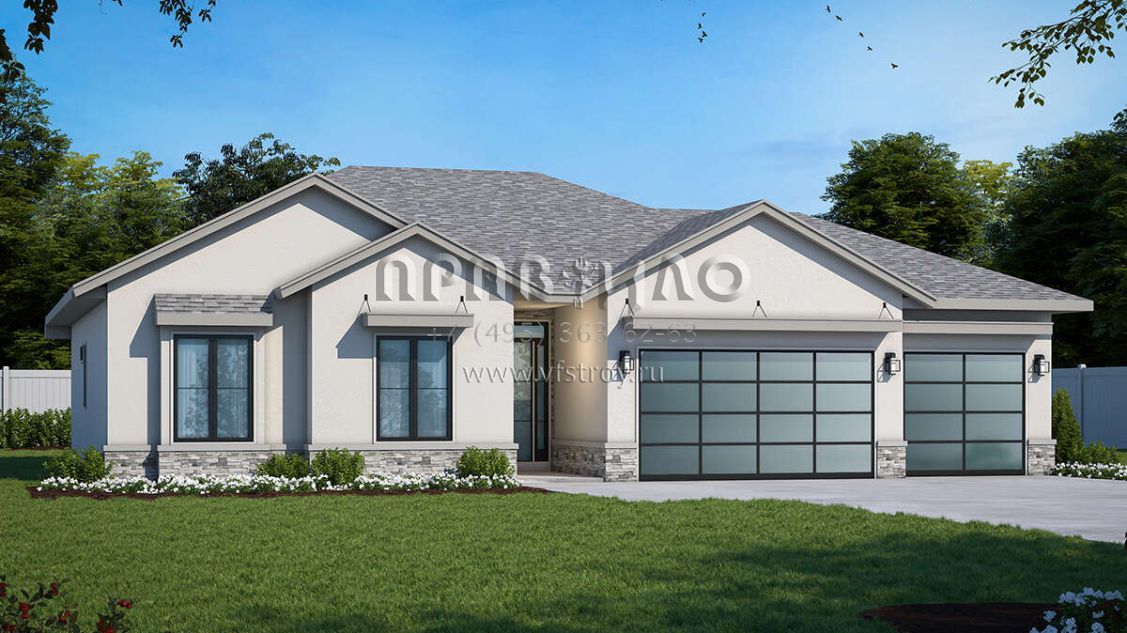 Проект одноэтажного дома с гаражом на три и более машин в стиле Ранчо S5-181 (402-01732)