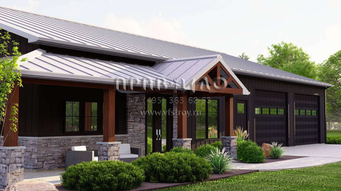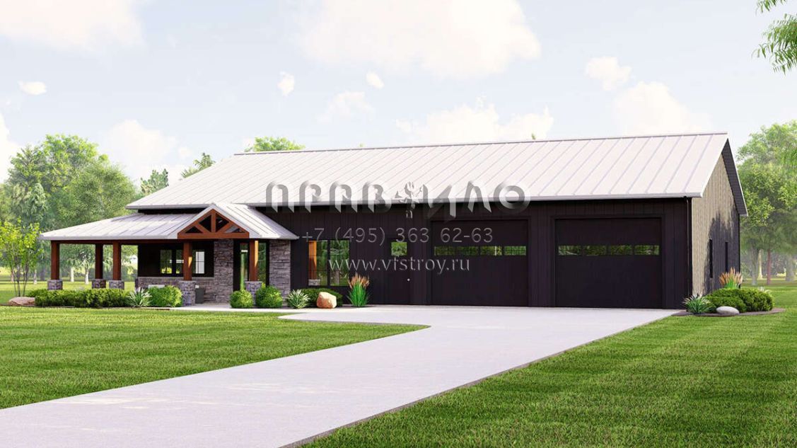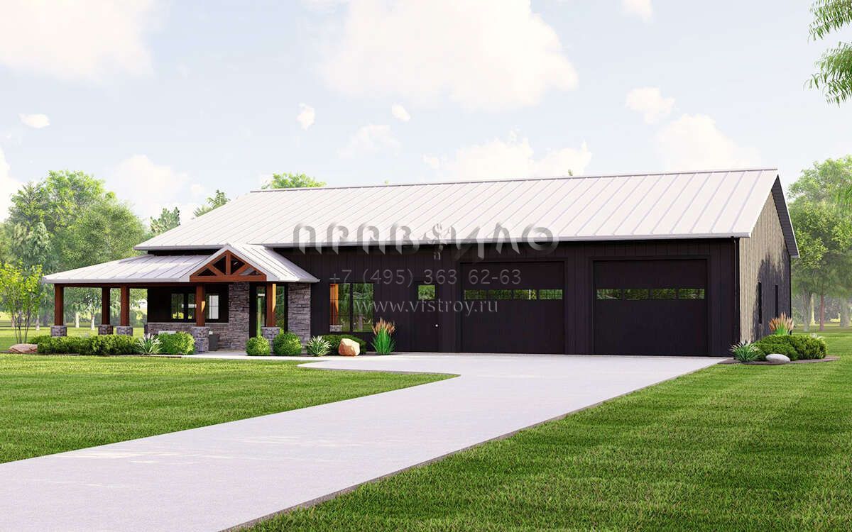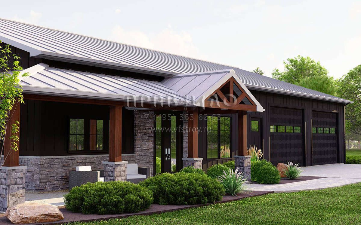 Проект одноэтажного дома с гаражом на две машины в стиле БарнХаус S5-181 (5032-00225)