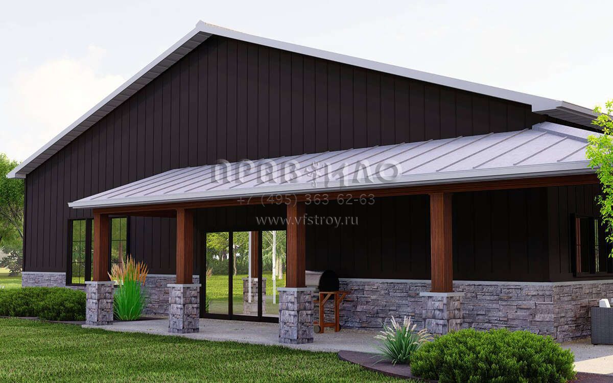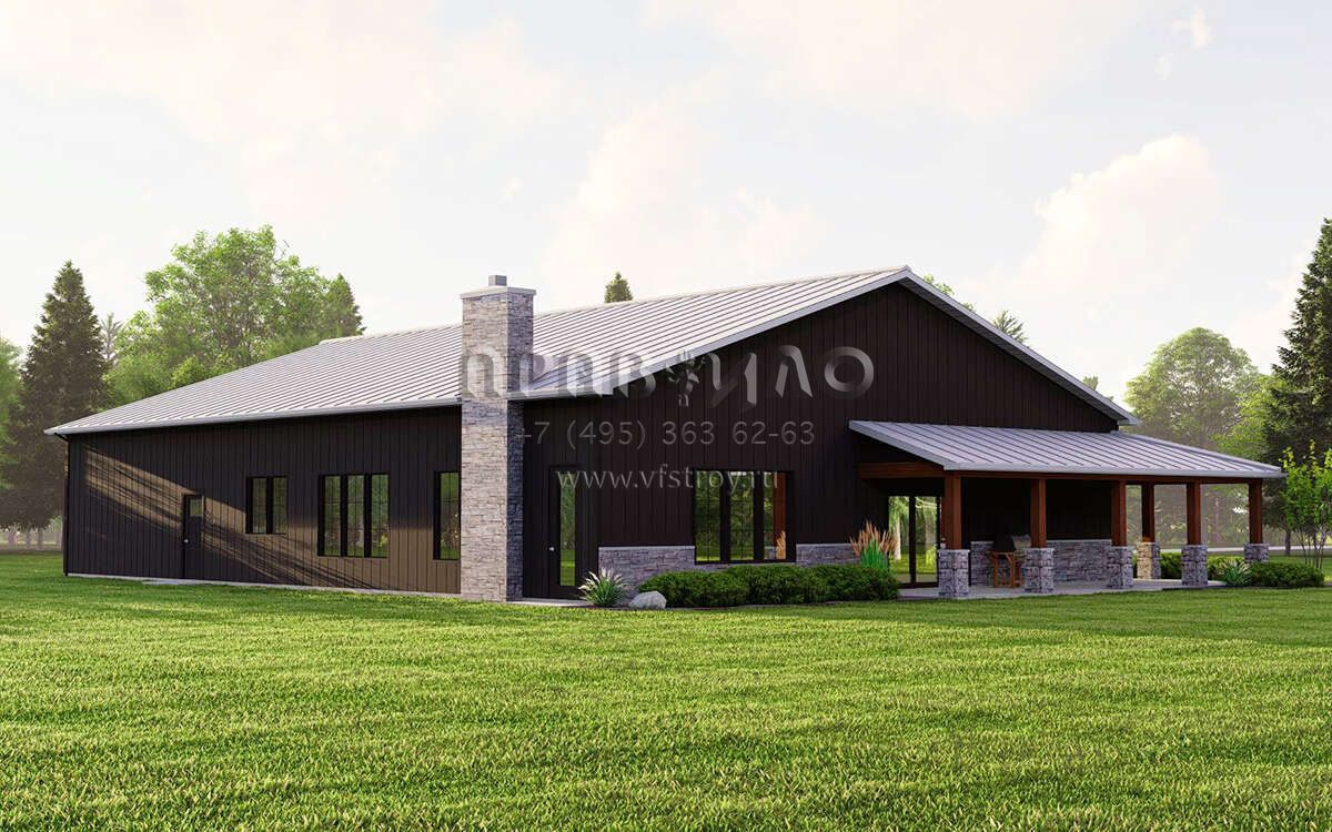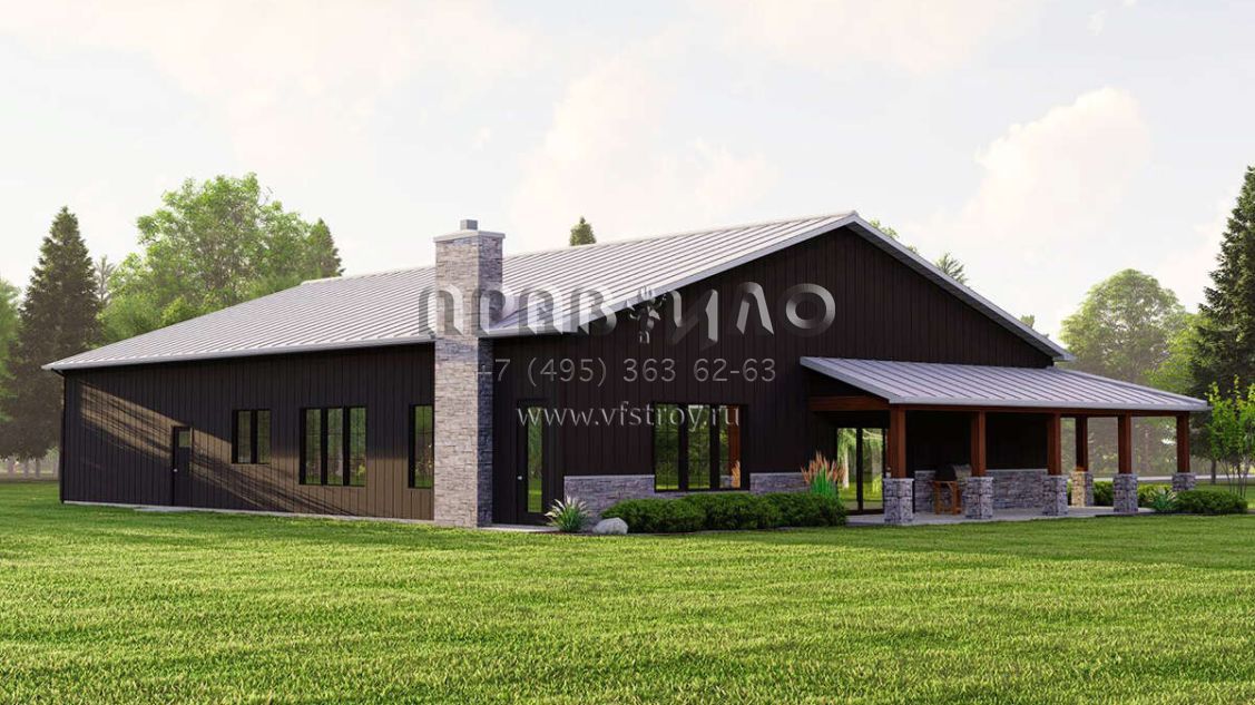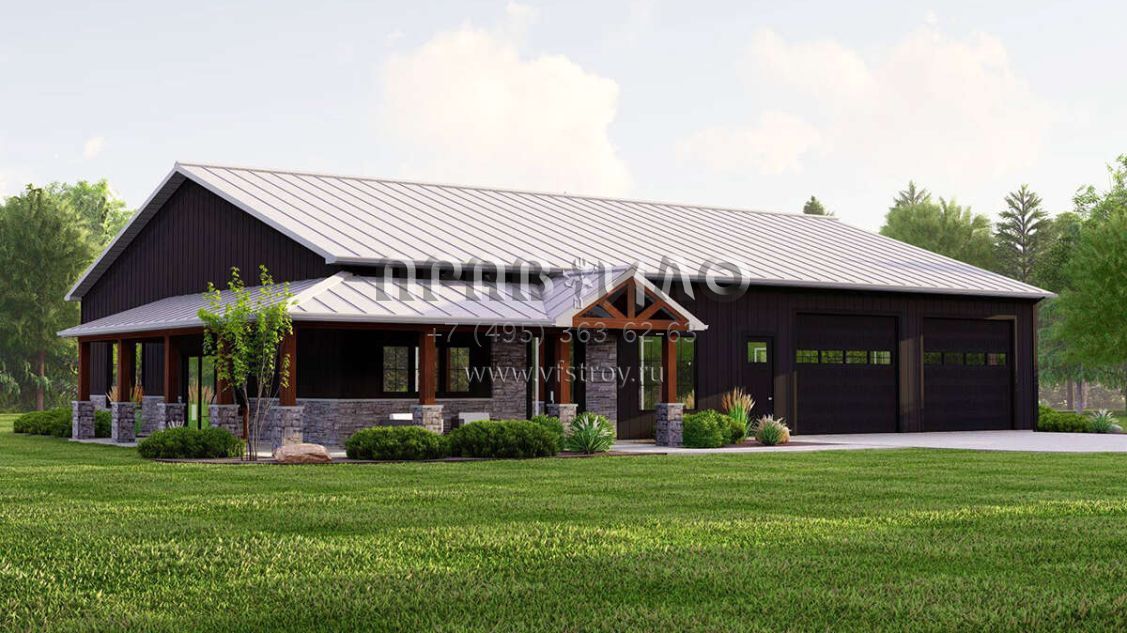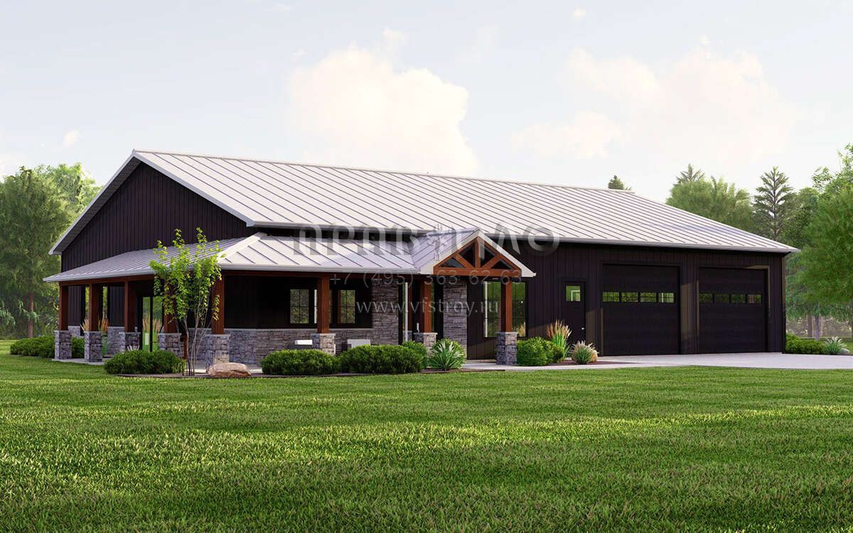 Проект одноэтажного дома с гаражом на две машины в стиле БарнХаус S5-181 (5032-00225)