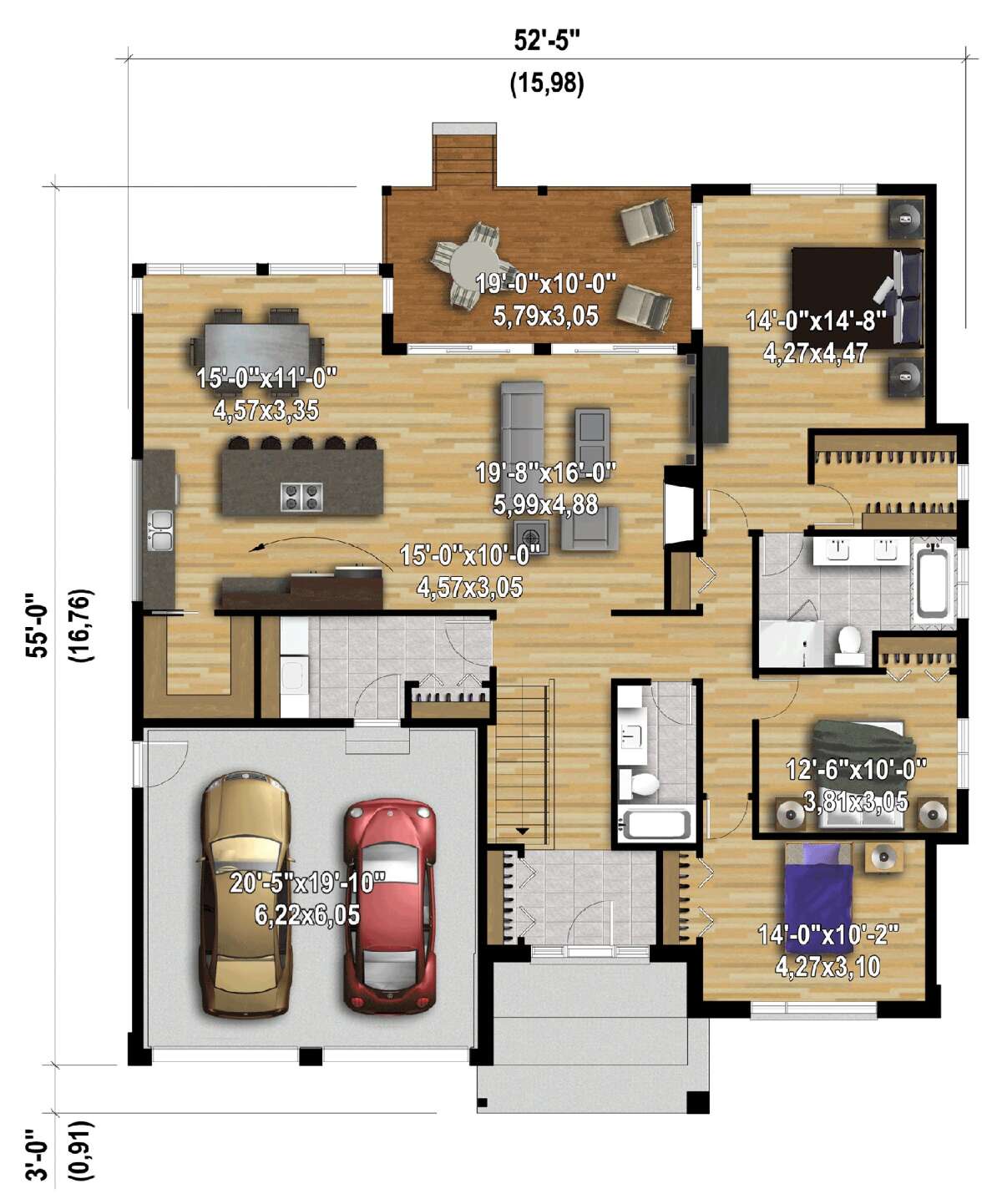 Проект одноэтажного дома с гаражом на две машины в современном стиле S5-181 (6146-00585)