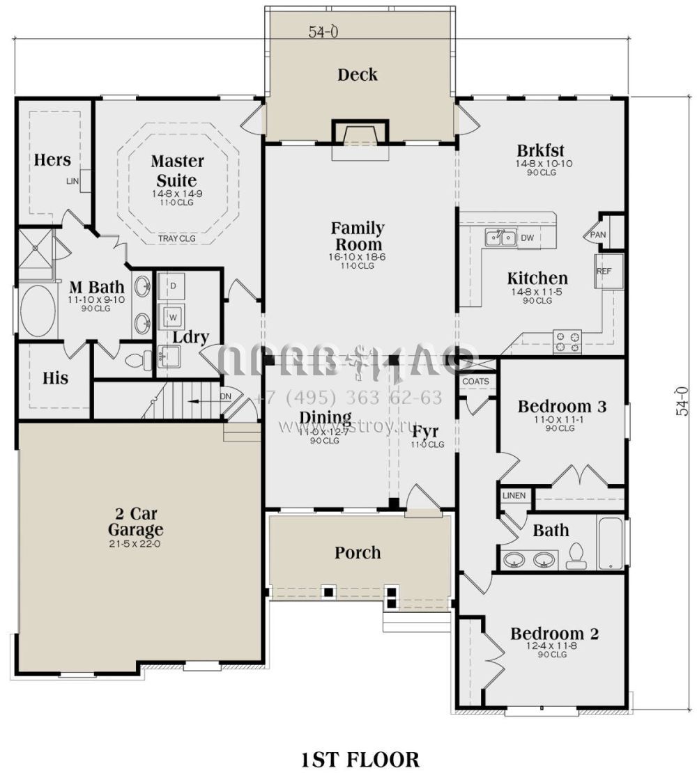 S5-182 (009-00058) Это иностранный проект, для которого требуется адаптация под нормы, действующие в Российской Федерации. Вы видите проект дома в стиле Ранчо. В этом доме сочетаются черты сельской постройки и аскетичность лофта. Внутри жильцы смогут проводить время с максимальным комфортом. Обратим внимание, что сейчас на планировках все размеры представлены в футах. Для перевода в метры вам необходимо значение в футах умножить на 0,3048.