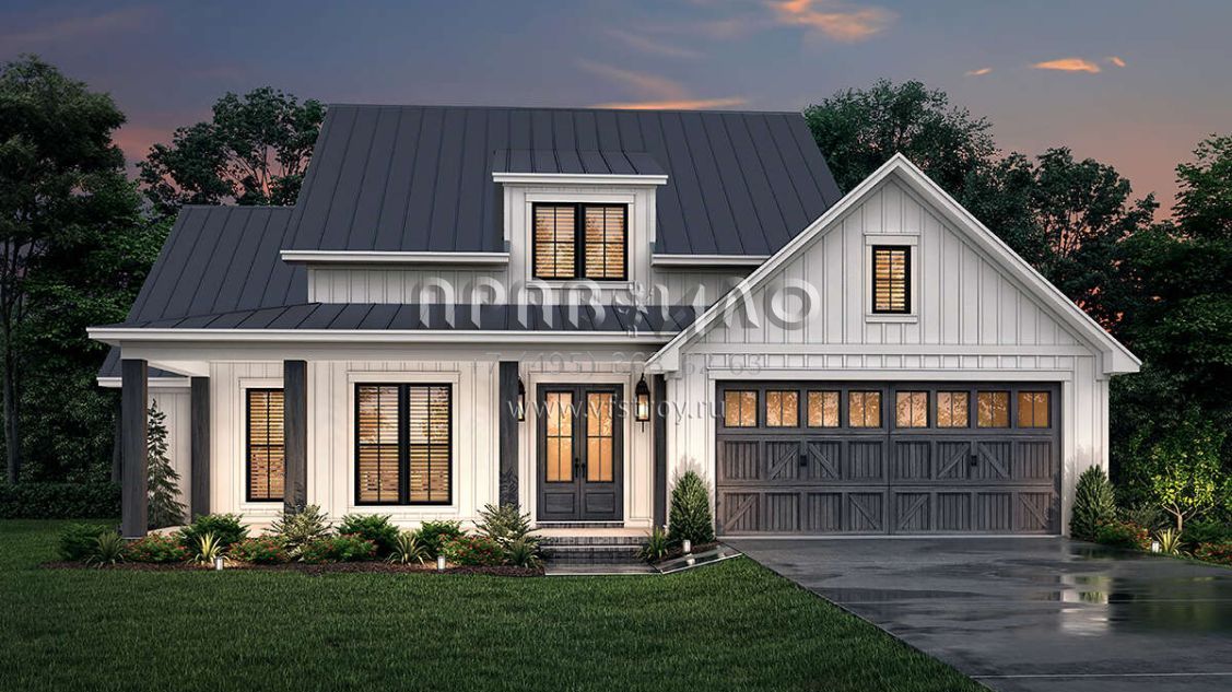 Проект одноэтажного дома с гаражом на две машины в современном стиле S5-182 (041-00266)