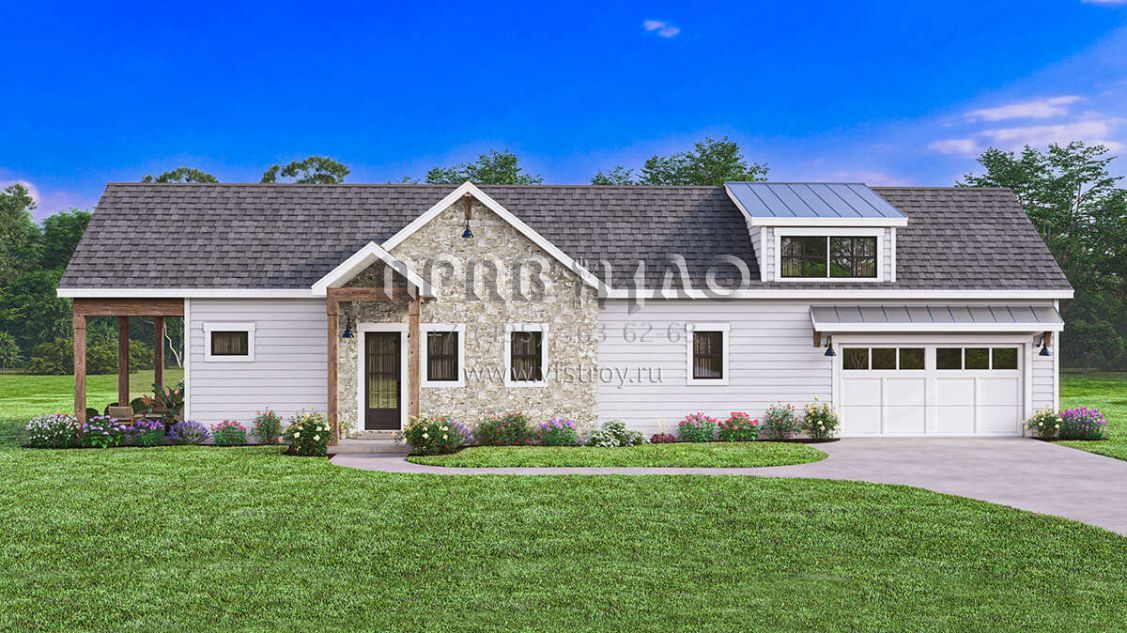 Проект одноэтажного дома с гаражом на две машины в стиле Ранчо S5-182 (1462-00099)