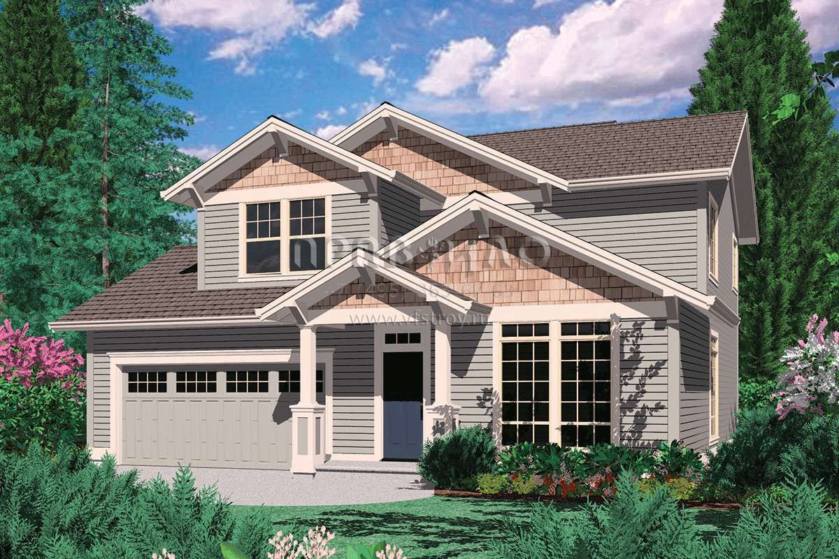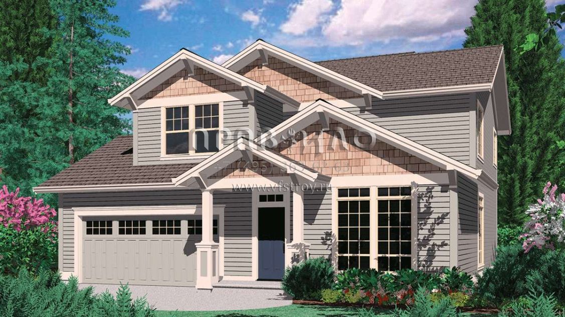 Проект двухэтажного дома с гаражом на две машины в стиле Ранчо S5-182 (2559-00195)