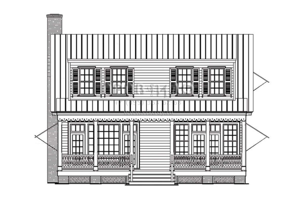 Это проект двухэтажного дома без гаража жилой площадью 182 кв.м. Длина дома 16.5 м, ширина 10.4 м, высота 8.5 м. В доме четыре спальни и три санузла.