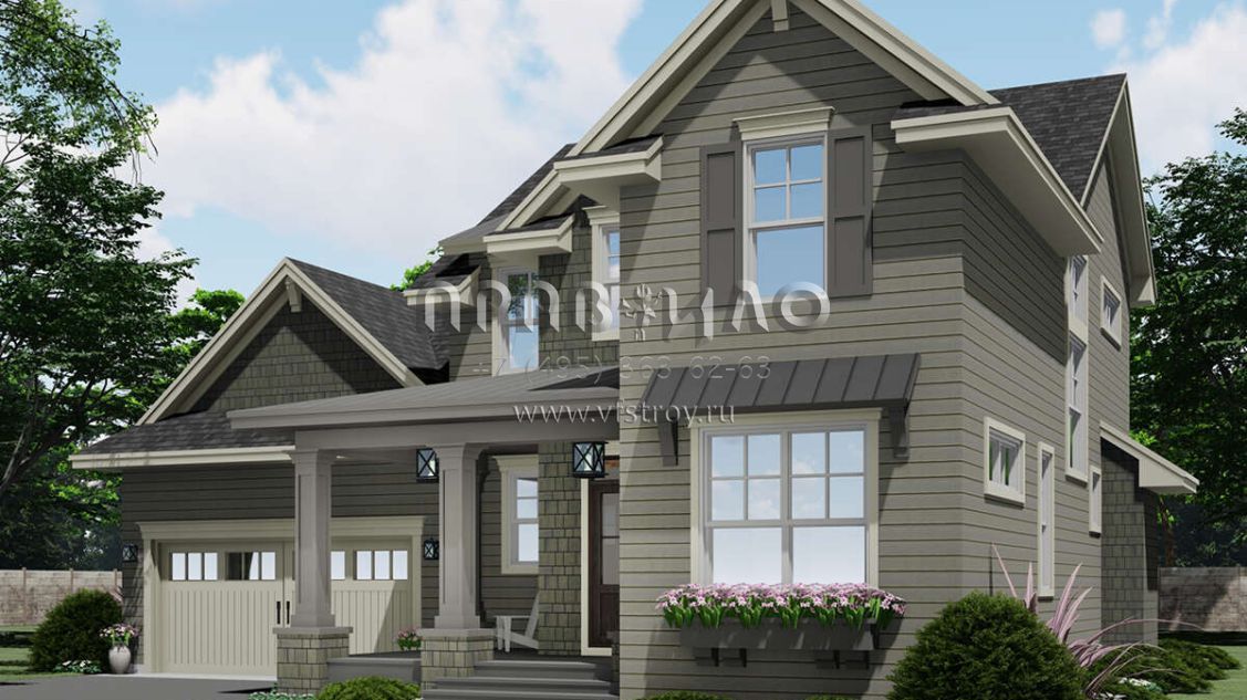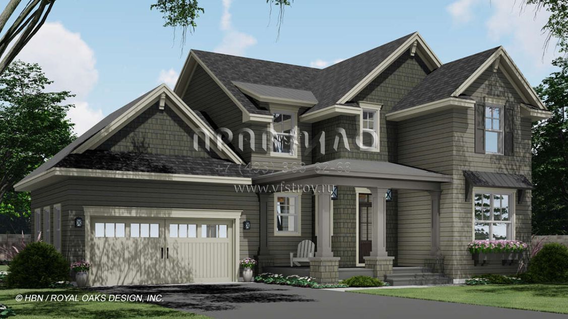 Проект двухэтажного дома с гаражом на две машины в американском стиле S5-183 (098-00361)