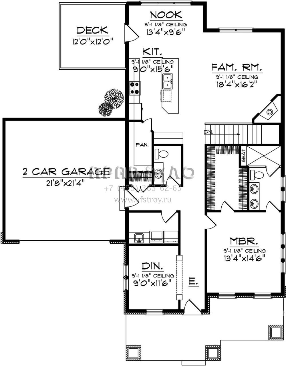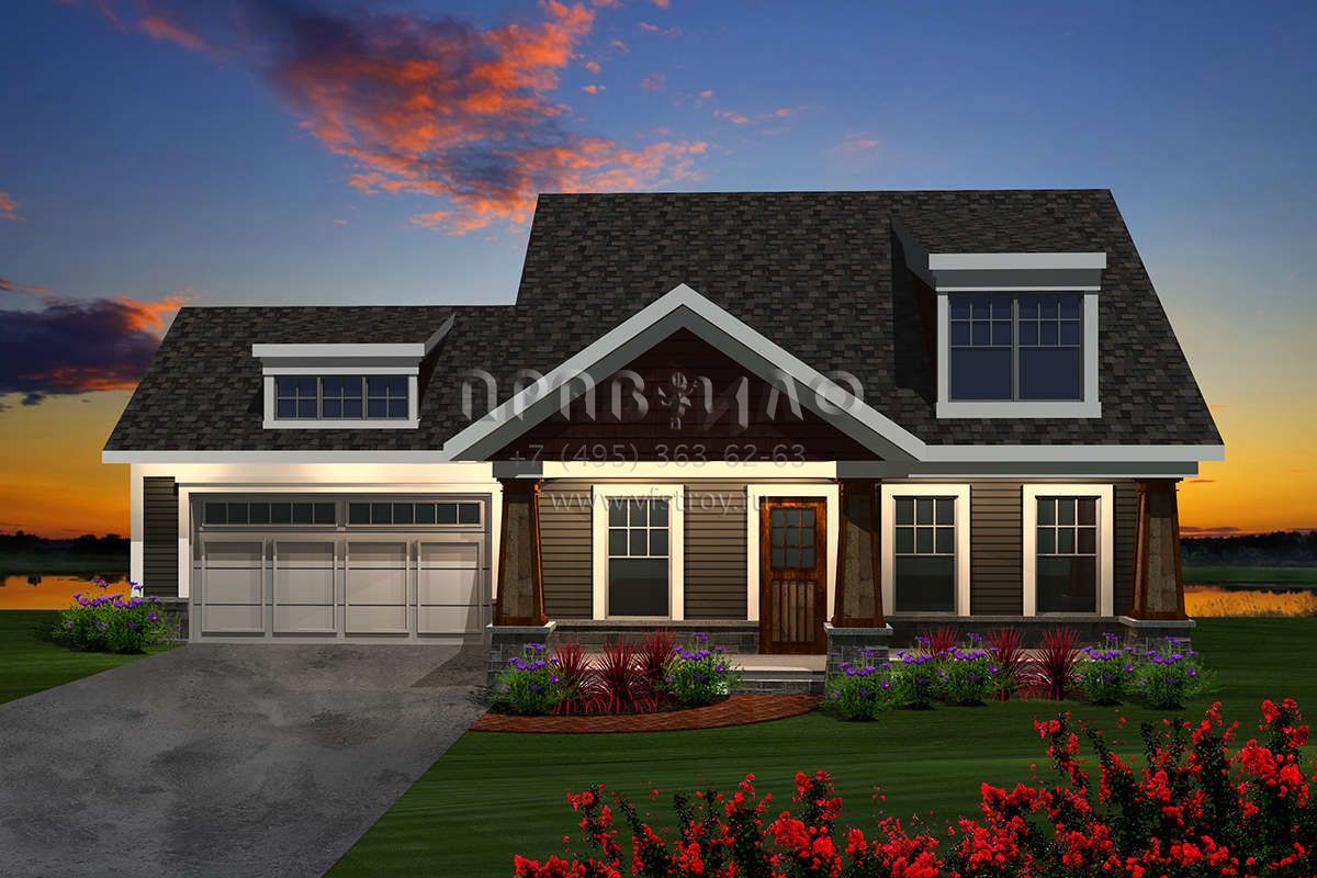 Проект одноэтажного дома с гаражом на две машины в американском стиле S5-183 (1020-00280)