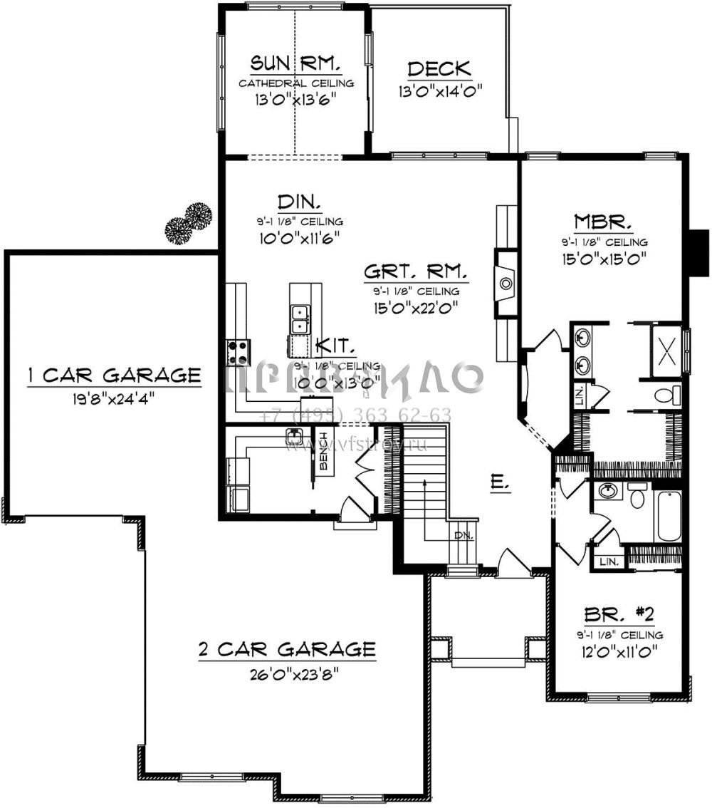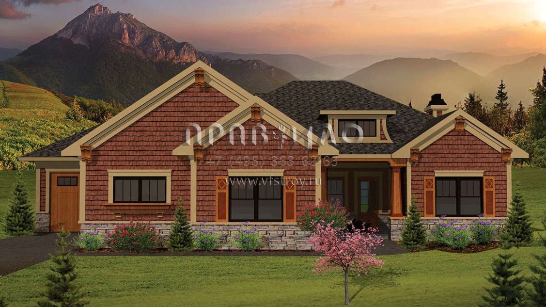 Проект одноэтажного дома с гаражом на три и более машин в американском стиле S5-183 (1020-00304)