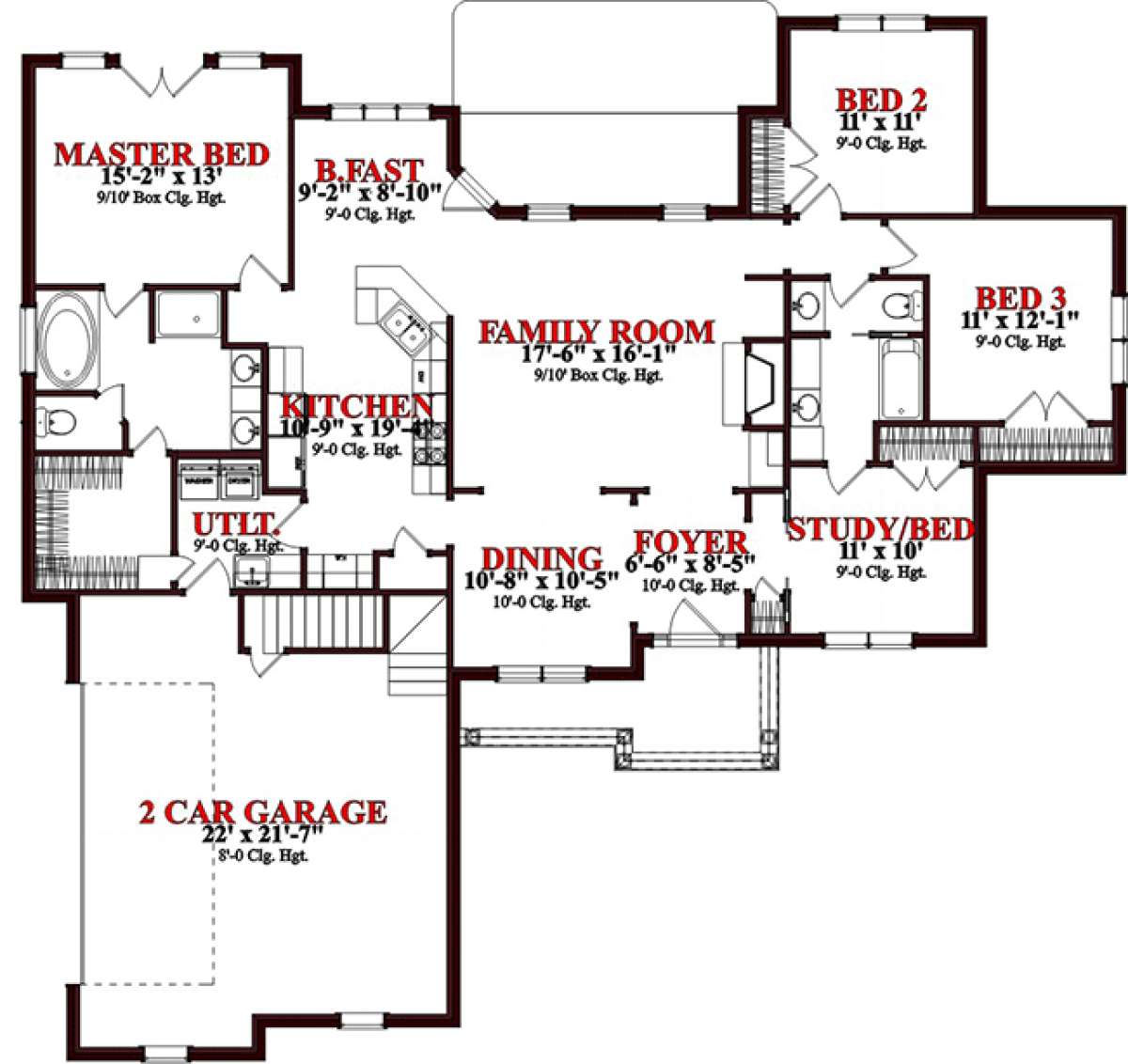Проект одноэтажного дома с гаражом на две машины в стиле Ранчо S5-183 (1070-00021)