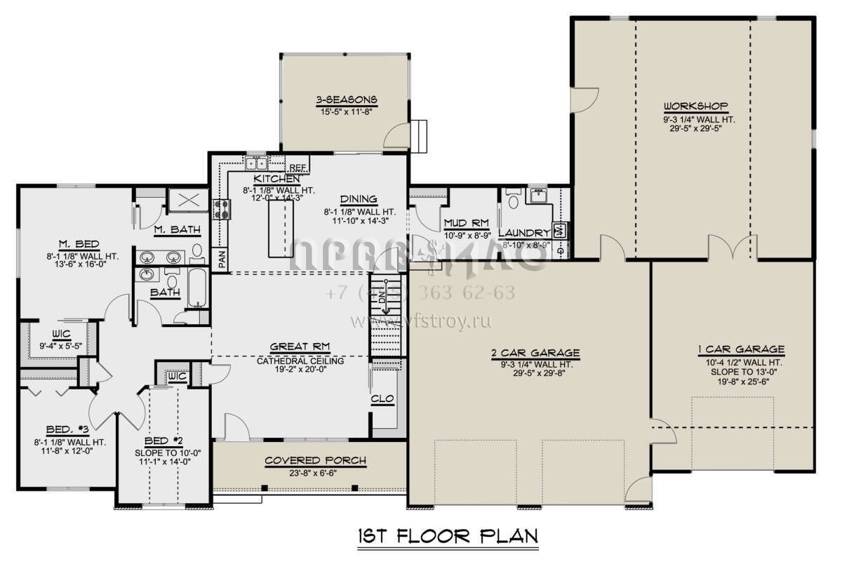 S5-183 (5032-00006) Это иностранный проект, для которого требуется адаптация под нормы, действующие в Российской Федерации. Вы видите проект дома в стиле Ранчо. В этом доме сочетаются черты сельской постройки и аскетичность лофта. Внутри жильцы смогут проводить время с максимальным комфортом. Обратим внимание, что сейчас на планировках все размеры представлены в футах. Для перевода в метры вам необходимо значение в футах умножить на 0,3048.
