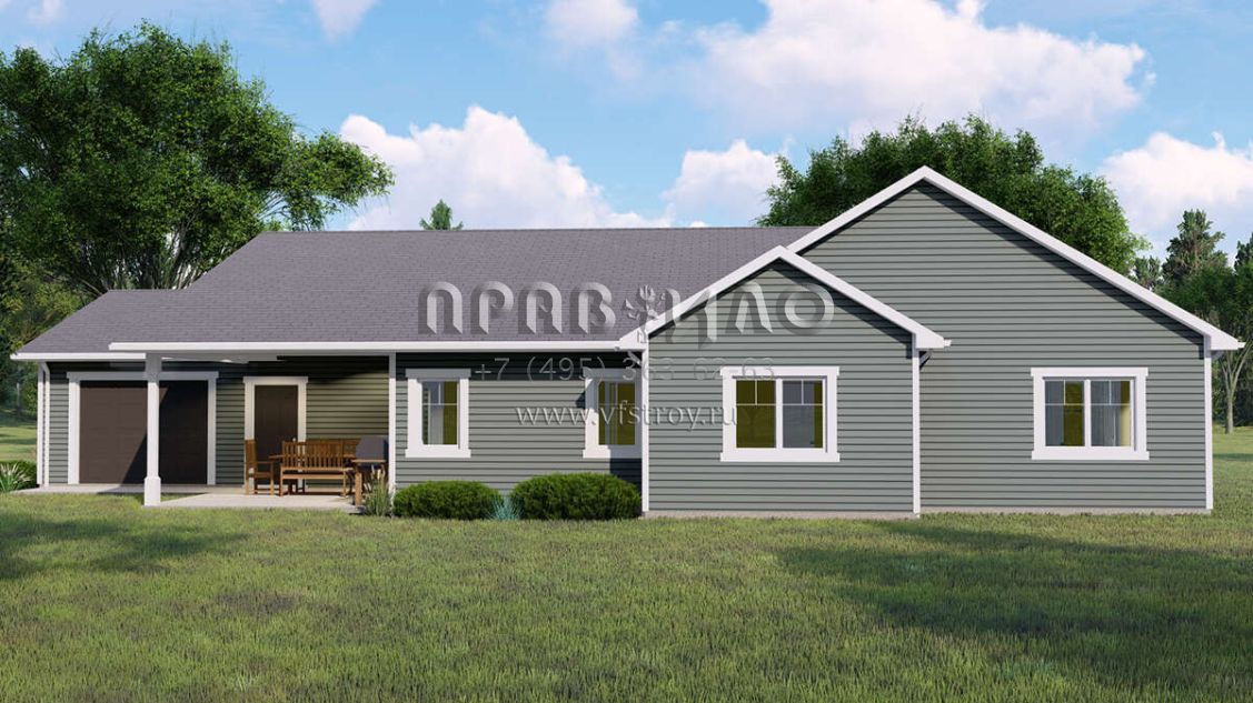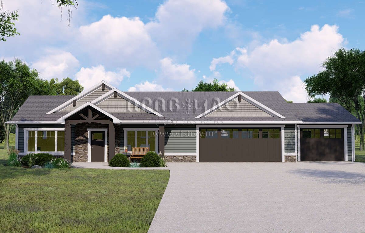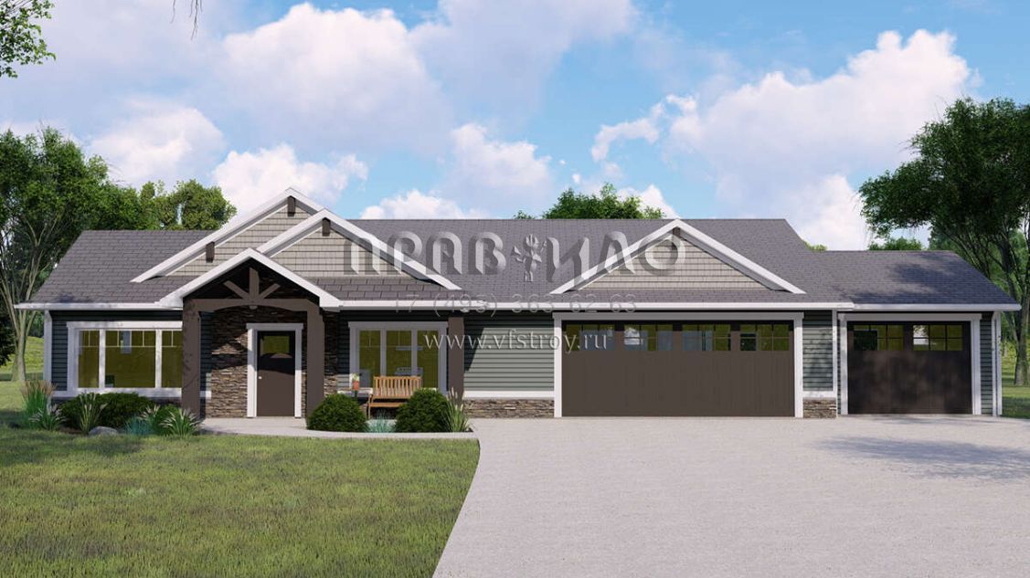 Проект одноэтажного дома с гаражом на три и более машин в американском стиле S5-183 (5032-00147)