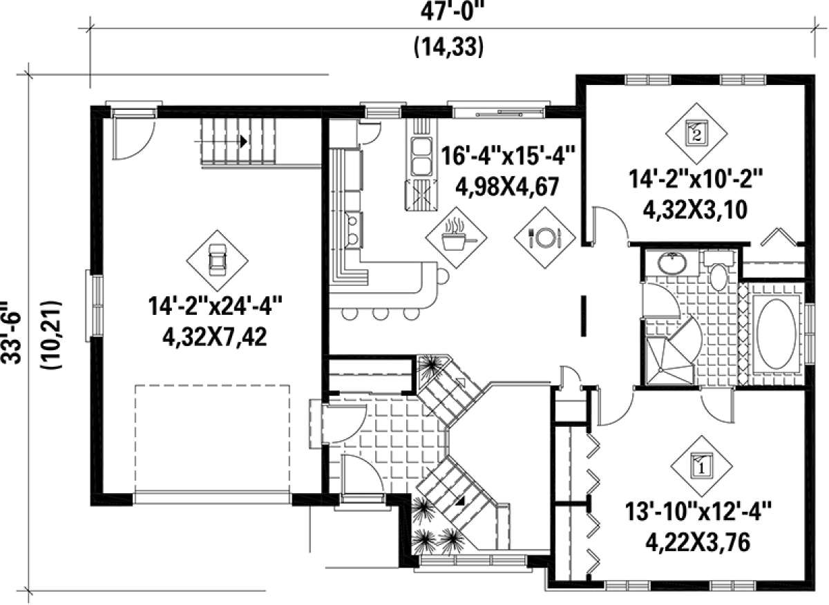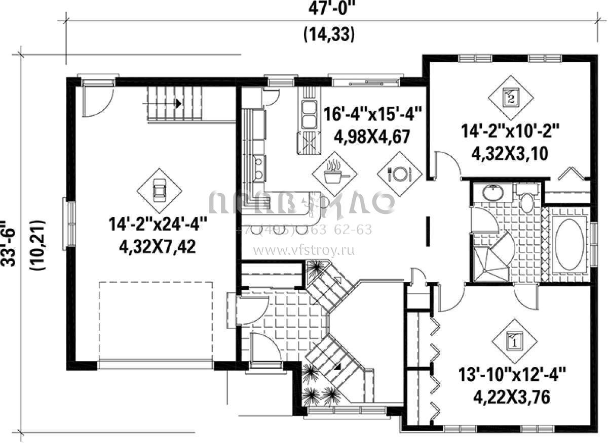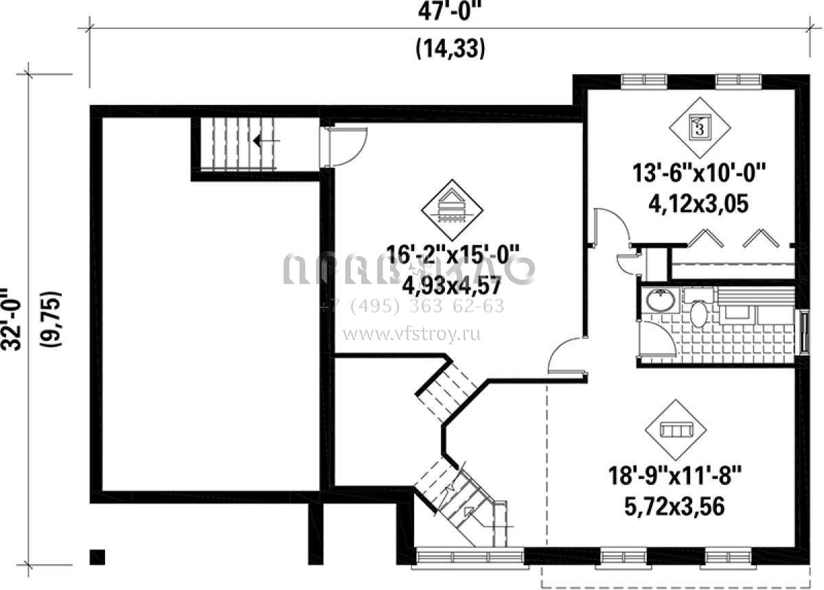 S5-183 (6146-00149) Это иностранный проект, для которого требуется адаптация под нормы, действующие в Российской Федерации. Вы видите проект дома в современном стиле. В этом доме сочетаются черты сельской постройки и аскетичность лофта. Внутри жильцы смогут проводить время с максимальным комфортом. Обратим внимание, что сейчас на планировках все размеры представлены в футах. Для перевода в метры вам необходимо значение в футах умножить на 0,3048.