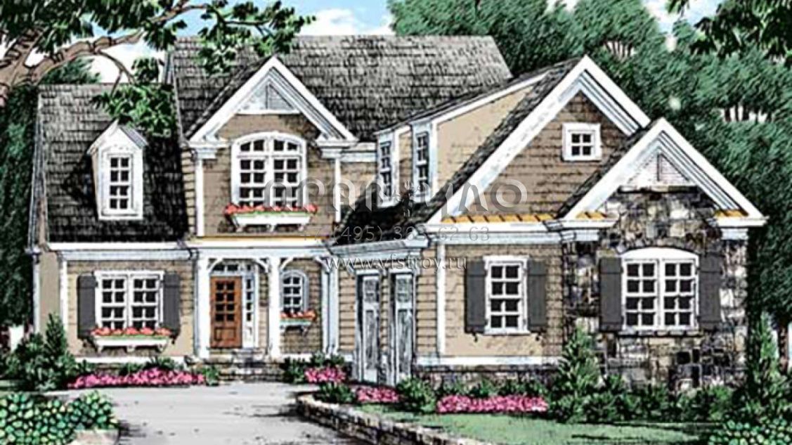 Проект двухэтажного дома с гаражом на две машины в стиле Ранчо S5-183 (8594-00170)