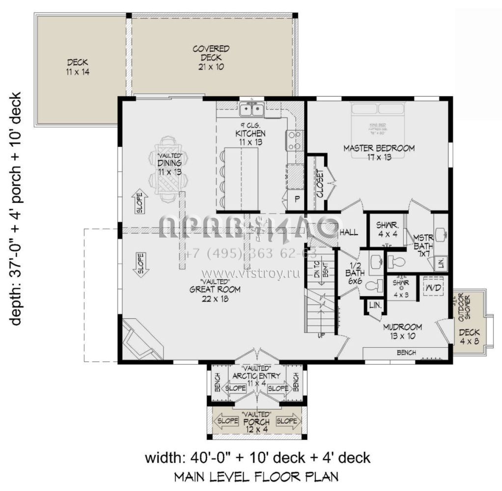 S5-183 (940-00840) Это иностранный проект, для которого требуется адаптация под нормы, действующие в Российской Федерации. Вы видите проект дома в прибрежном стиле. В этом доме сочетаются черты сельской постройки и аскетичность лофта. Внутри жильцы смогут проводить время с максимальным комфортом. Обратим внимание, что сейчас на планировках все размеры представлены в футах. Для перевода в метры вам необходимо значение в футах умножить на 0,3048.