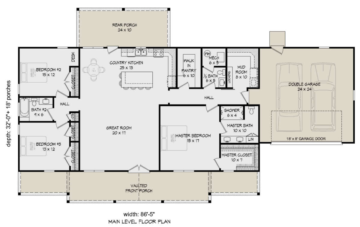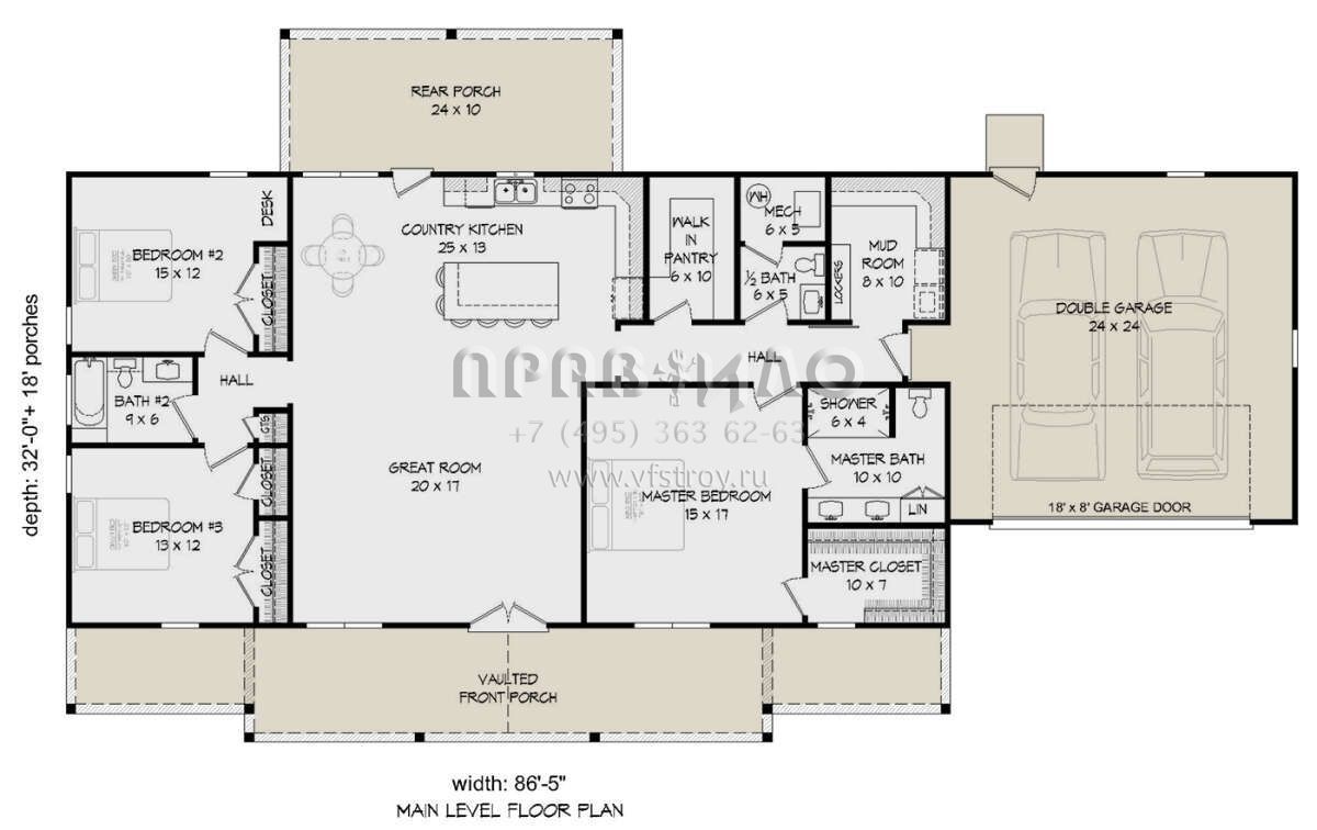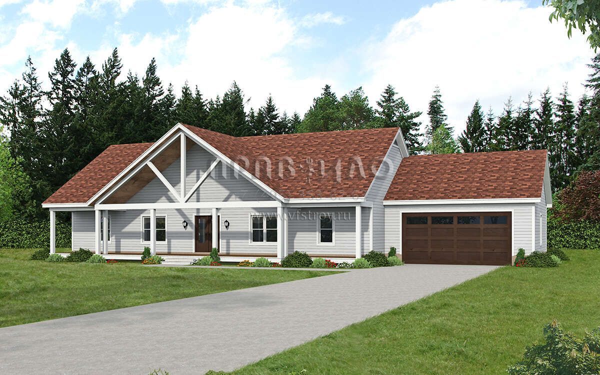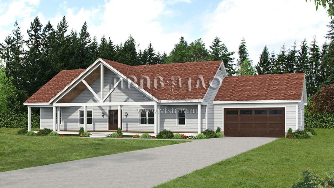Проект одноэтажного дома с гаражом на две машины в стиле Ранчо S5-183 (940-00864)