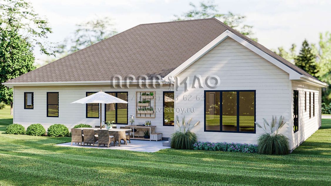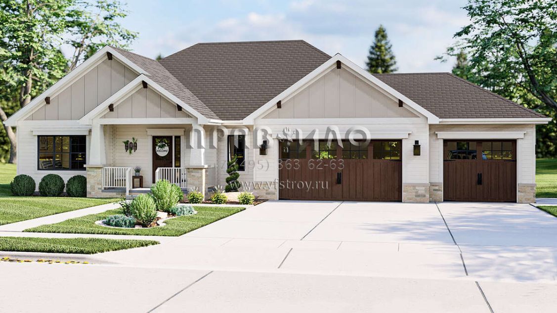 Проект одноэтажного дома с гаражом на три и более машин в американском стиле S5-183 (963-00573)