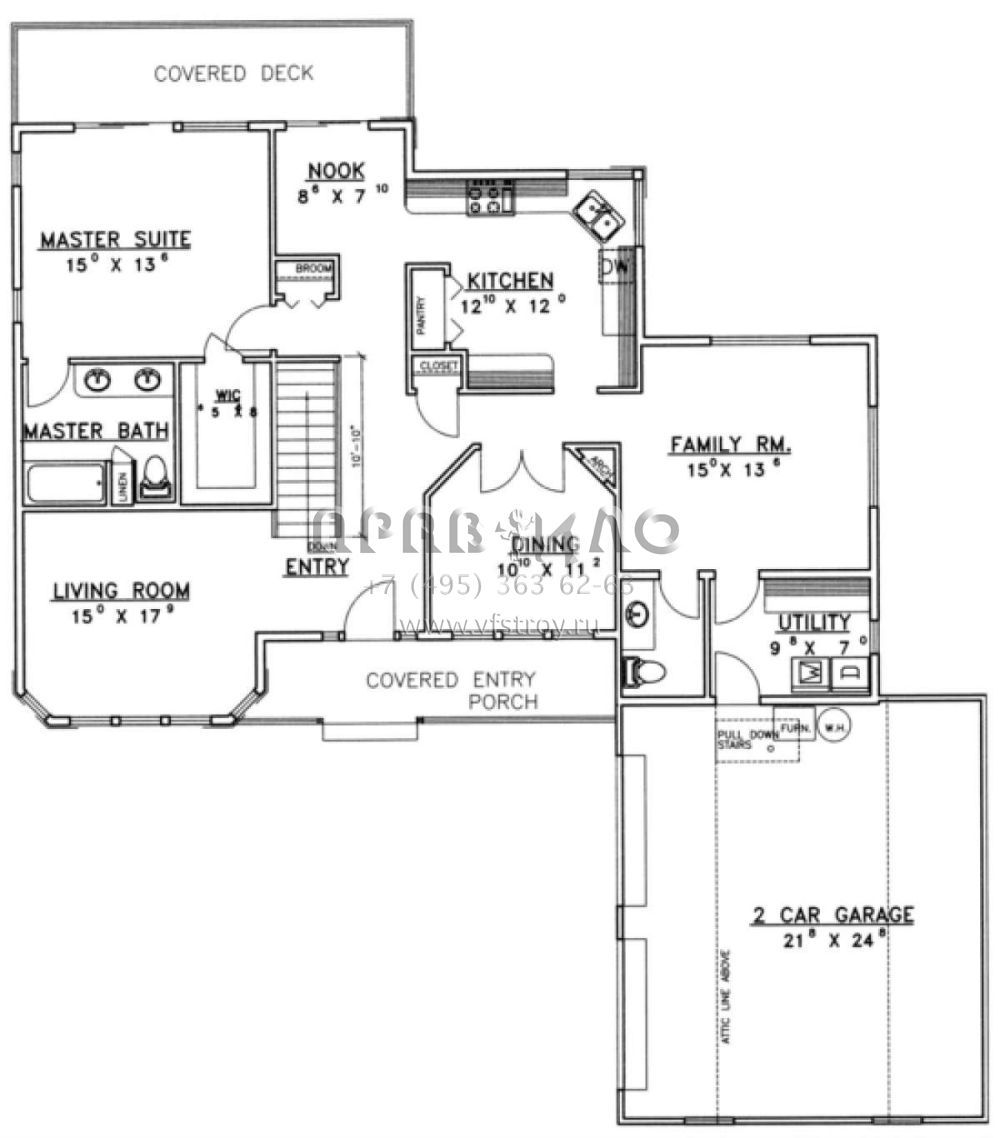 S5-184 (039-00240) Это иностранный проект, для которого требуется адаптация под нормы, действующие в Российской Федерации. Вы видите проект дома в стиле Ранчо. В этом доме сочетаются черты сельской постройки и аскетичность лофта. Внутри жильцы смогут проводить время с максимальным комфортом. Обратим внимание, что сейчас на планировках все размеры представлены в футах. Для перевода в метры вам необходимо значение в футах умножить на 0,3048.