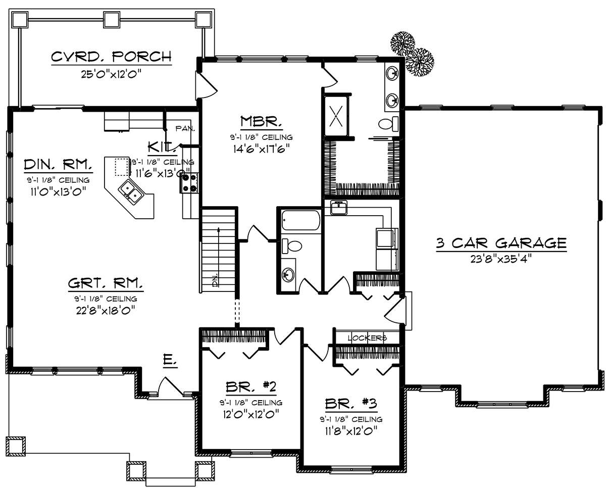 Проект одноэтажного дома с гаражом на три и более машин в американском стиле S5-184 (1020-00028)
