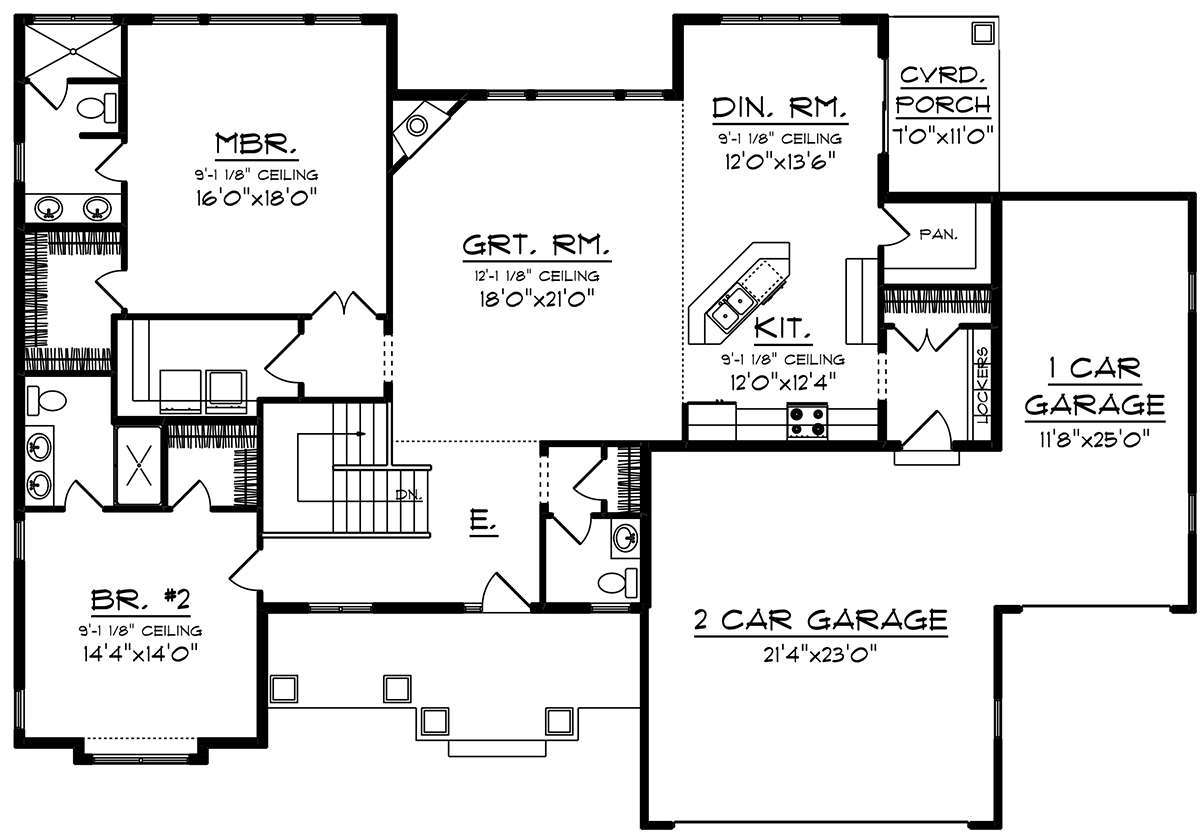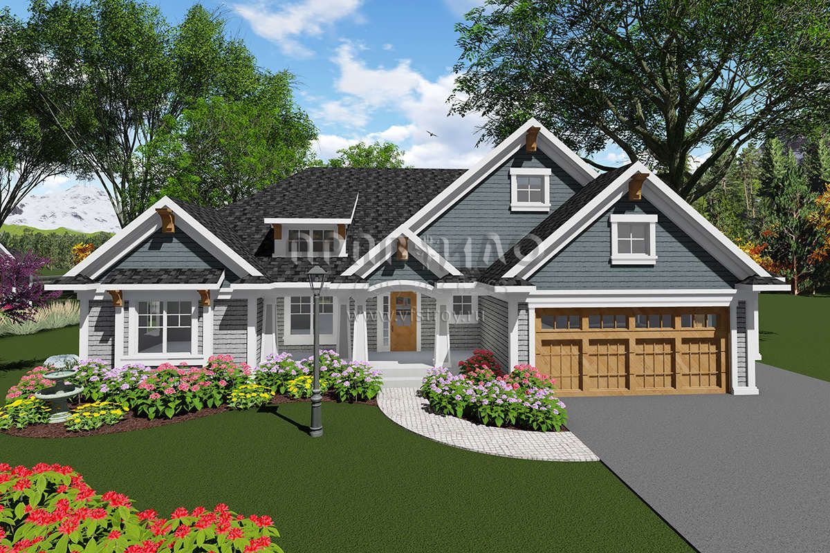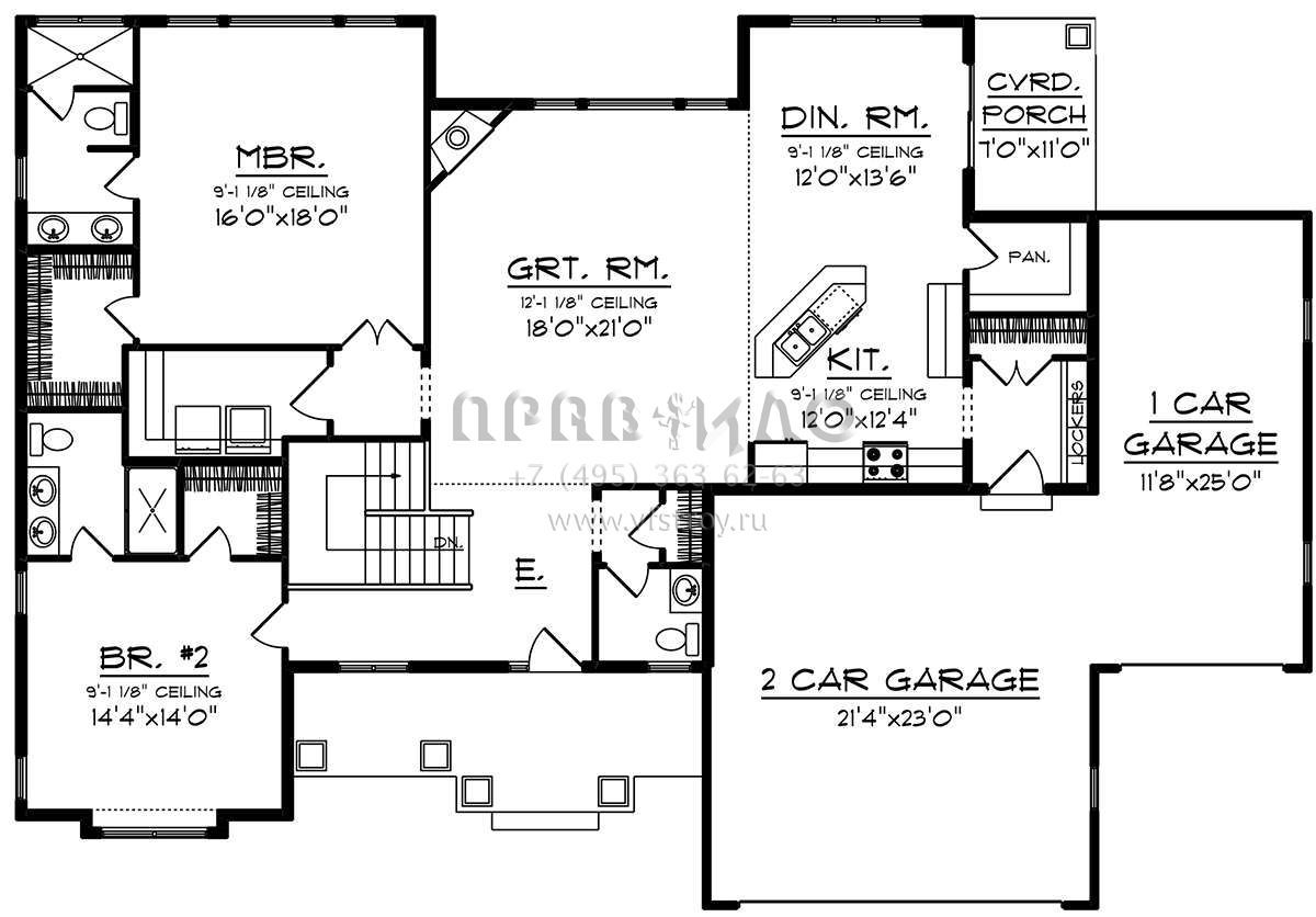 Проект одноэтажного дома с гаражом на три и более машин в американском стиле S5-184 (1020-00061)