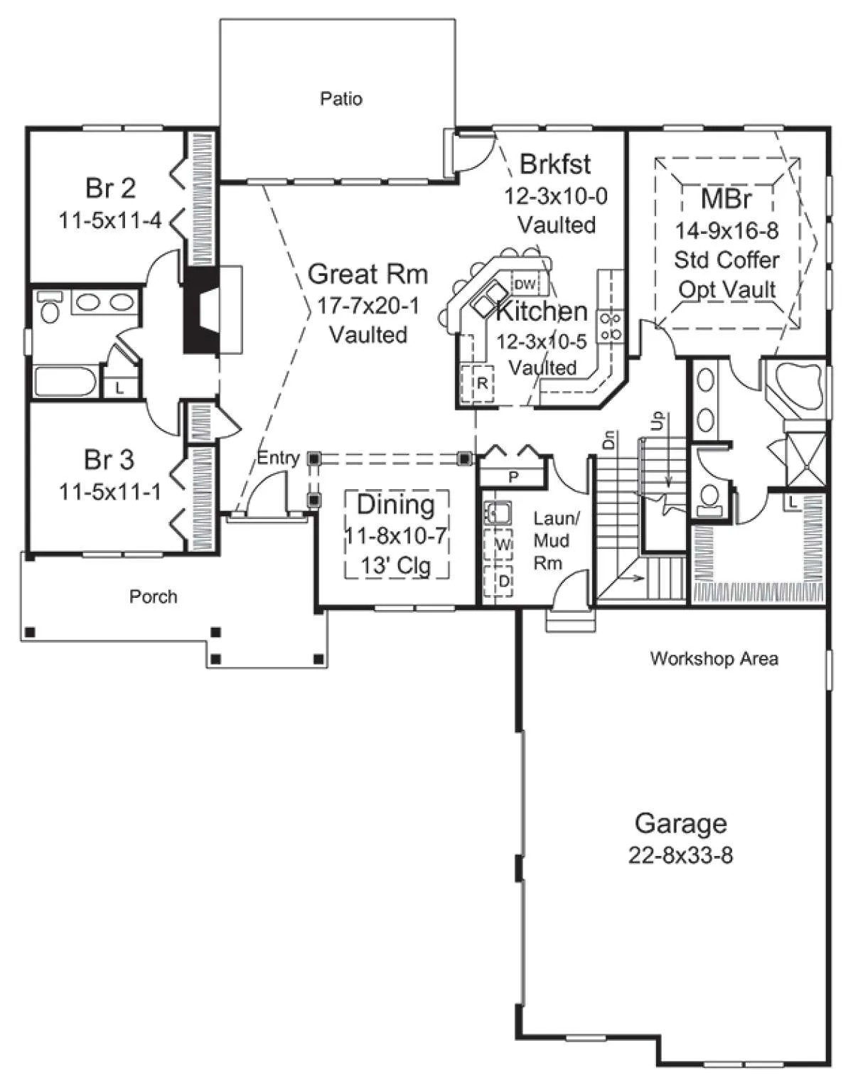 Проект одноэтажного дома с гаражом на две машины в стиле Ранчо S5-184 (5633-00288)