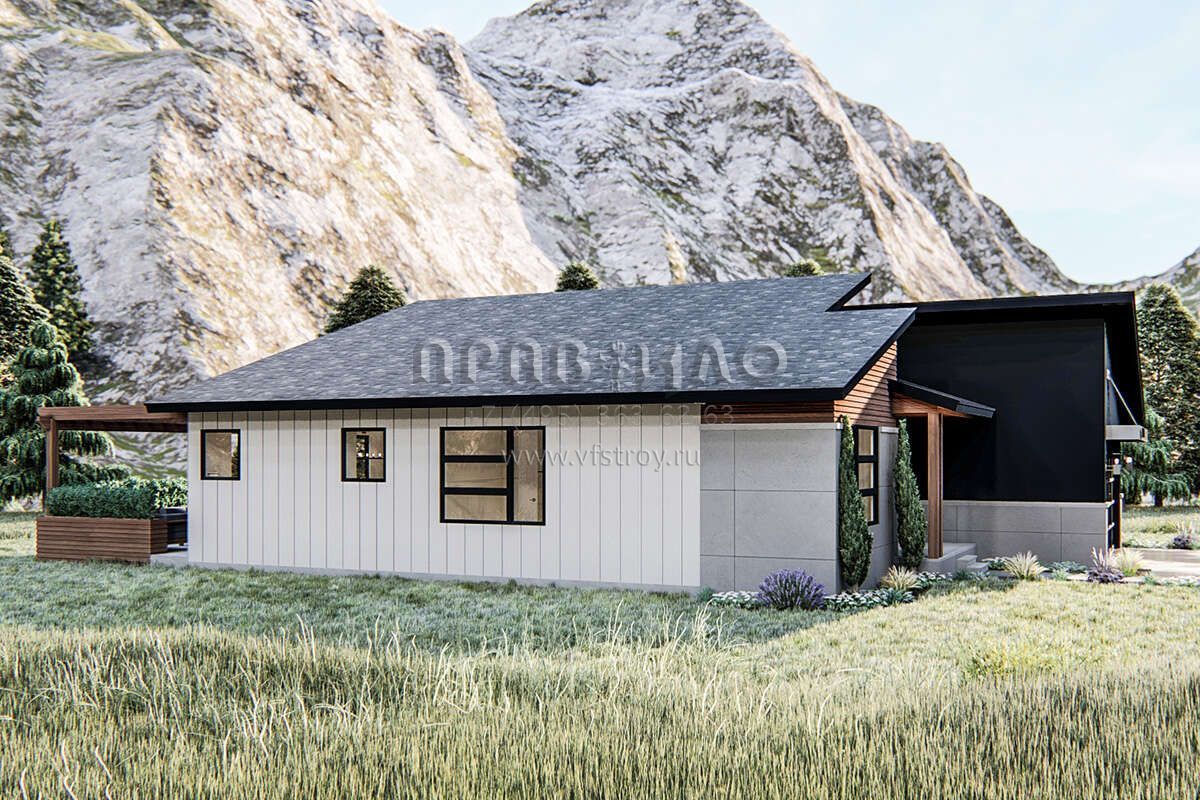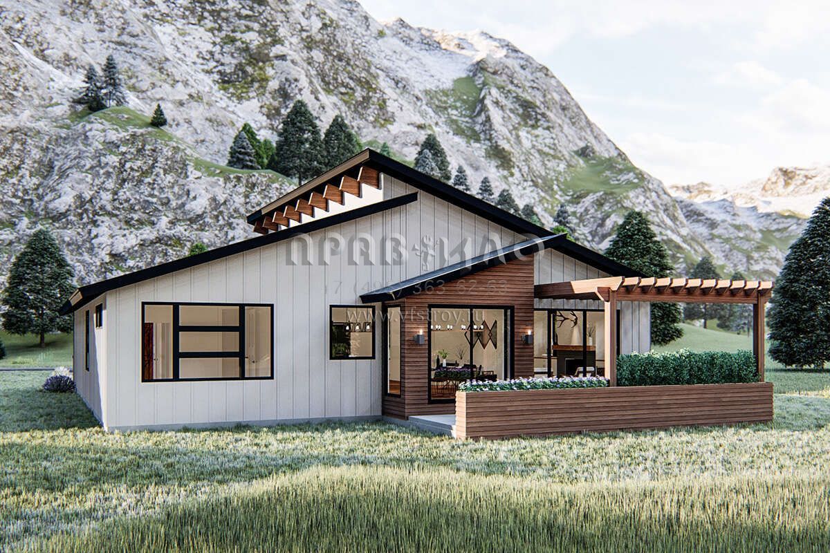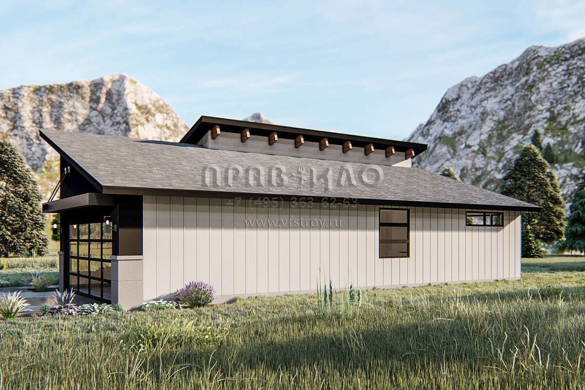 S5-184 (963-00389) Это иностранный проект, для которого требуется адаптация под нормы, действующие в Российской Федерации. Вы видите проект дома в современном стиле. В этом доме сочетаются черты сельской постройки и аскетичность лофта. Внутри жильцы смогут проводить время с максимальным комфортом. Обратим внимание, что сейчас на планировках все размеры представлены в футах. Для перевода в метры вам необходимо значение в футах умножить на 0,3048.