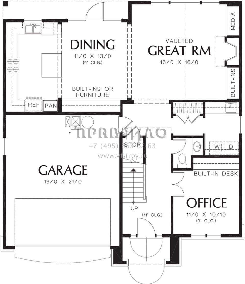 Проект двухэтажного дома с гаражом на две машины в стиле Ранчо S5-185 (2559-00208)