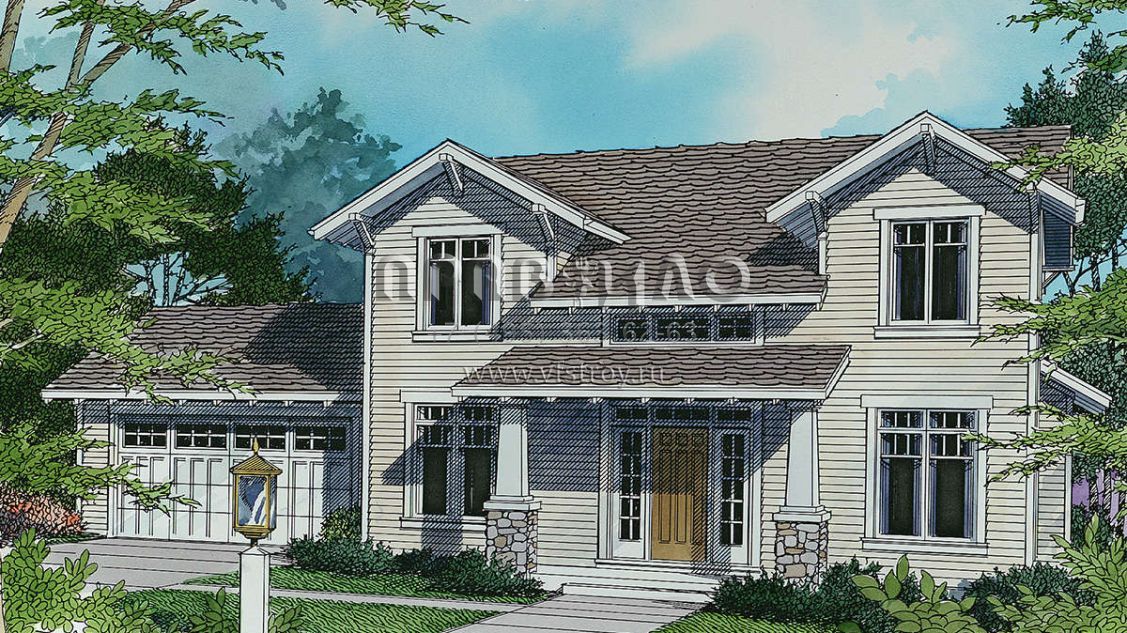 Проект двухэтажного дома с гаражом на две машины в американском стиле S5-185 (2559-00254)