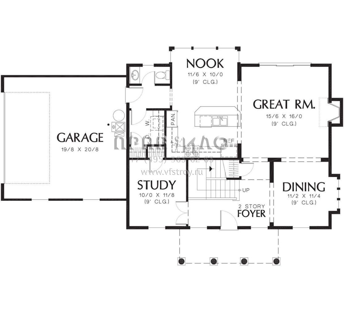 S5-185 (2559-00255) Это иностранный проект, для которого требуется адаптация под нормы, действующие в Российской Федерации. Вы видите проект дома в стиле Ранчо. В этом доме сочетаются черты сельской постройки и аскетичность лофта. Внутри жильцы смогут проводить время с максимальным комфортом. Обратим внимание, что сейчас на планировках все размеры представлены в футах. Для перевода в метры вам необходимо значение в футах умножить на 0,3048.