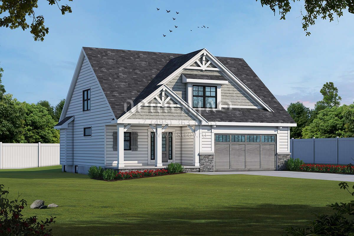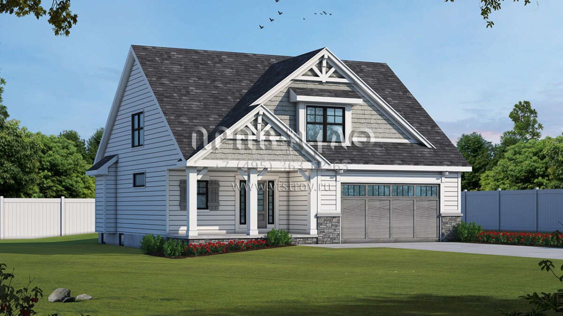 Проект двухэтажного дома с гаражом на три и более машин в американском стиле S5-185 (402-01717)