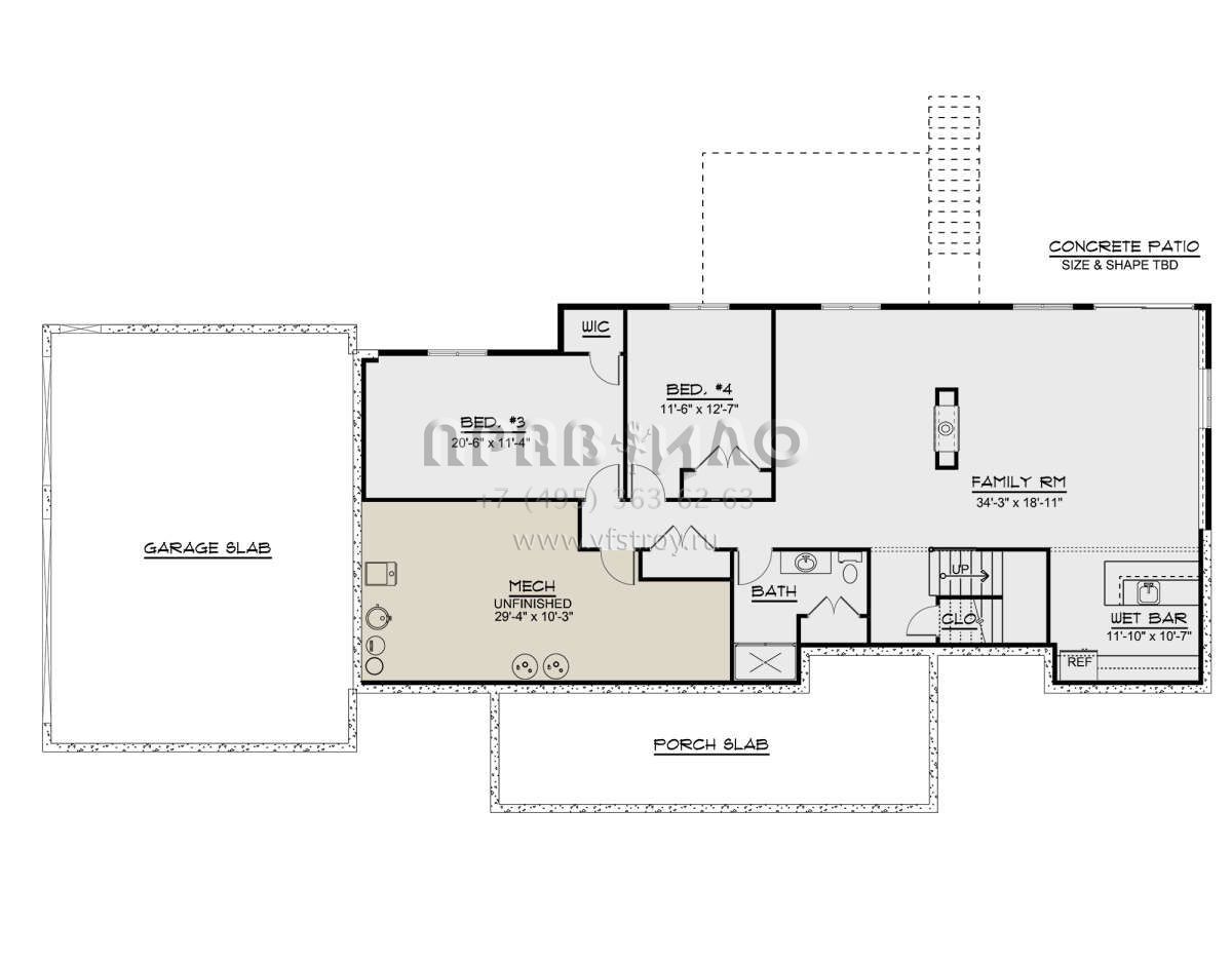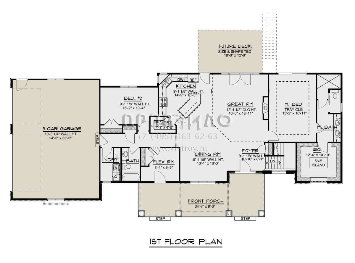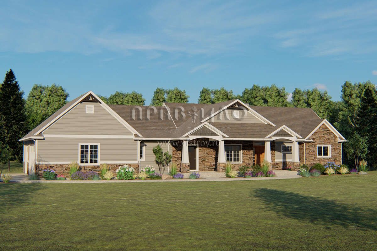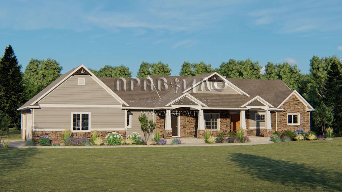 Проект одноэтажного дома с гаражом на три и более машин в американском стиле S5-185 (5032-00049)