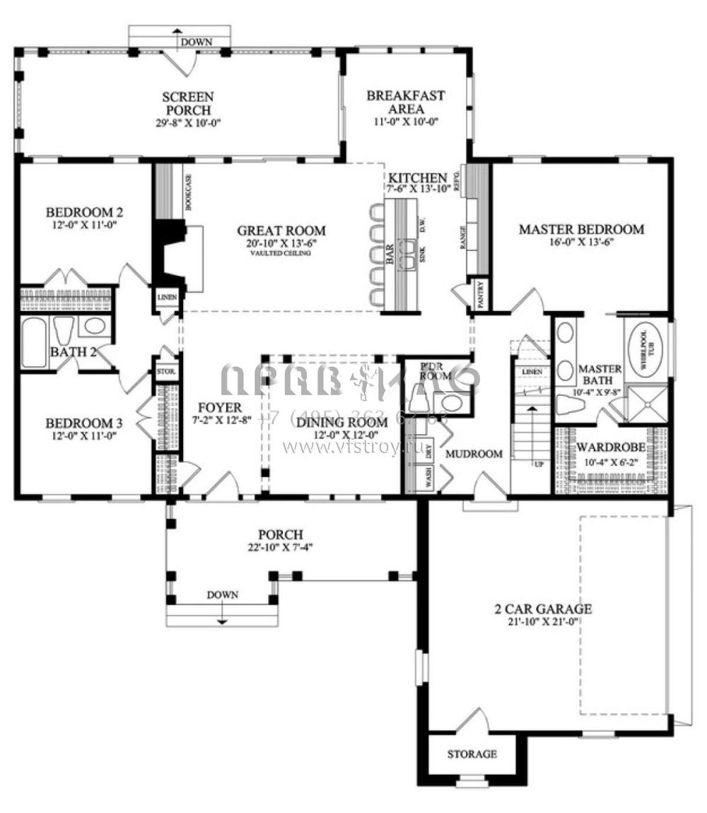 Проект одноэтажного дома с гаражом на две машины в стиле Ранчо S5-185 (7922-00044)